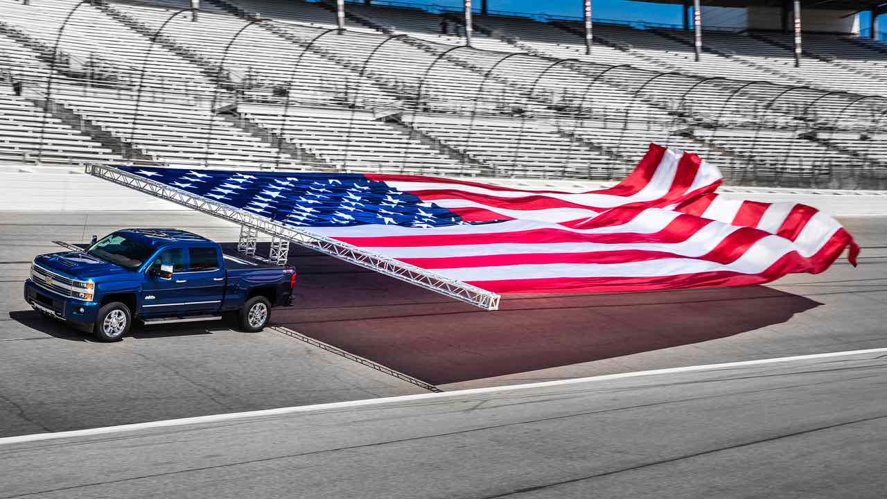 Así transportó el Chevrolet Silverado una bandera gigante