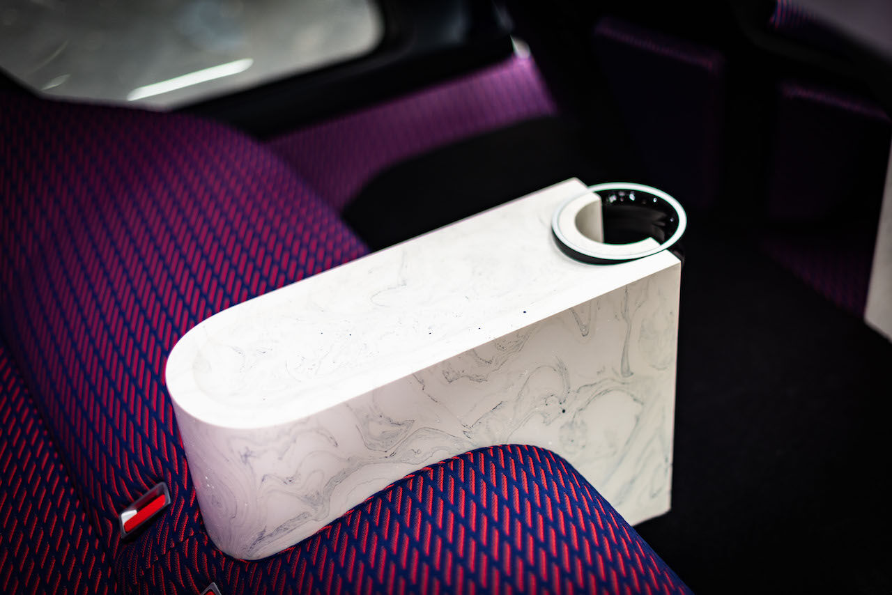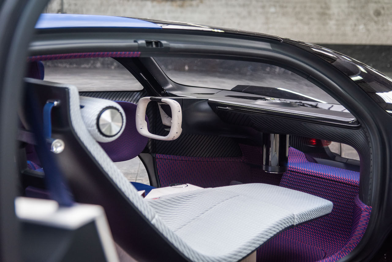 Las llantas de 30 pulgadas son bastante innovadoras, llevan unos neumáticos Goodyear que también ponen el toque de color al prototipo. Aunque pudiera parecer que ese tamaño de llanta restaría confort en marcha, lo cierto es que la suspensión con amortiguadores hidráulicos progresivos consigue solventarlo. Con un control activo inteligente consigue esa sensación de ‘alfombra mágica’ que hará las delicias de los ocupantes. La aerodinámica también ha sido trabajada para que no aparezcan ruidos molestos.