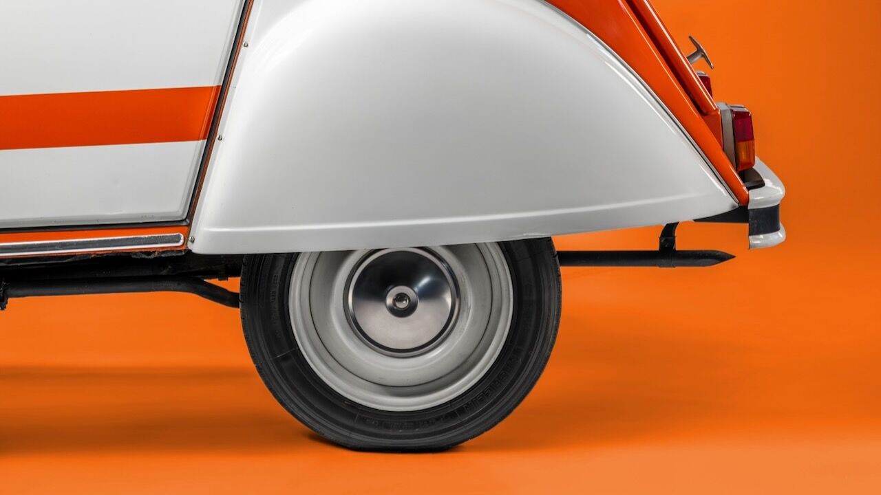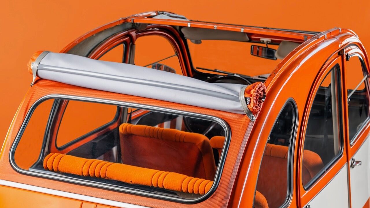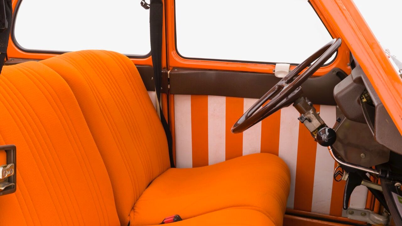 Eso se traduce en un pequeño motor bicilíndrico de 435 cc que apenas le permitía acercarse a la barrera de los 100 km/h, pero que dejaba un consumo de apenas 5,4 l/100km. El habitáculo mantenía esa filosofía de sencillez, destacando los asientos delanteros individuales tapizados en un llamativo tejido de color naranja veneciano y el volante de un solo brazo firmado por Quillery. Este Citroën 2 CV Spot salió a la venta por 13.600 francos de la época, una cifra que equivaldría a unos 12.000 euros si ajustamos la inflación a nuestros días.