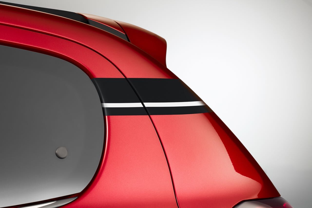 Por dentro también hay diferencias con otras versiones convencionales. Lo más llamativo es quizá su tapicería, con un tejiido en dos colores (gris y blanco) y pespuntes en rojo, a juego con el exterior. Cuenta con alfombrillas exclusivas con el logotipo del acabado y un salpicadero en blanco, donde destacan los embellecedores de los aireadores laterales en negro.