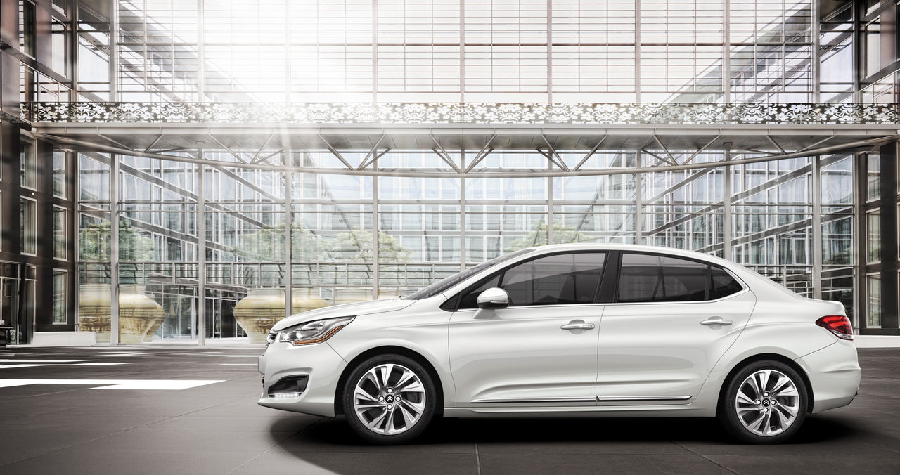 Su exterior resulta bastante agradable, pues aun derivando del C4, no da la sensación de que el tercer volumen quede como puesto «de pegote», resultando una berlina sorprendentemente equilibrada y con un diseño bastante atractivo, sobre todo si nos fijamos en la parte trasera. No deja de contar señas de identidad de los modelos más altos de gama de Citroën, como la luna trasera de diseño cóncavo, como la del Citroën C5 y el Citroën C6. En cuanto al maletero, sin ser tampoco excesivamente escaso, se queda en solo 440 litros de capacidad.