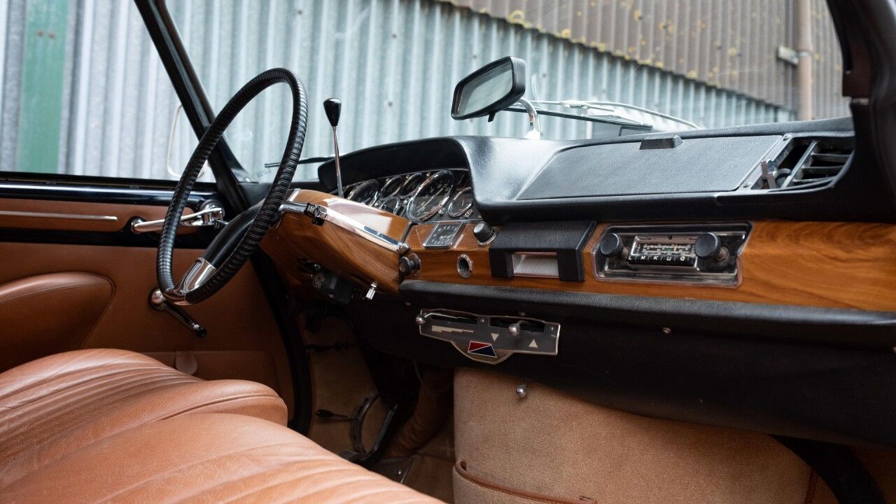 Los asientos y los paneles de las puertas están revestidos en cuero de color beige Havana, combinado con la imitación de madera de burl pintada a mano del salpicadero y la moqueta de lana marrón. Cabe decir que luce así de bien gracias a la restauración a la que sometió en 2009. Sin embargo, la berlina francesa ahora requiere algo de trabajo para devolverlo a las condiciones de concurso después de haber estado almacenado durante tantos años.