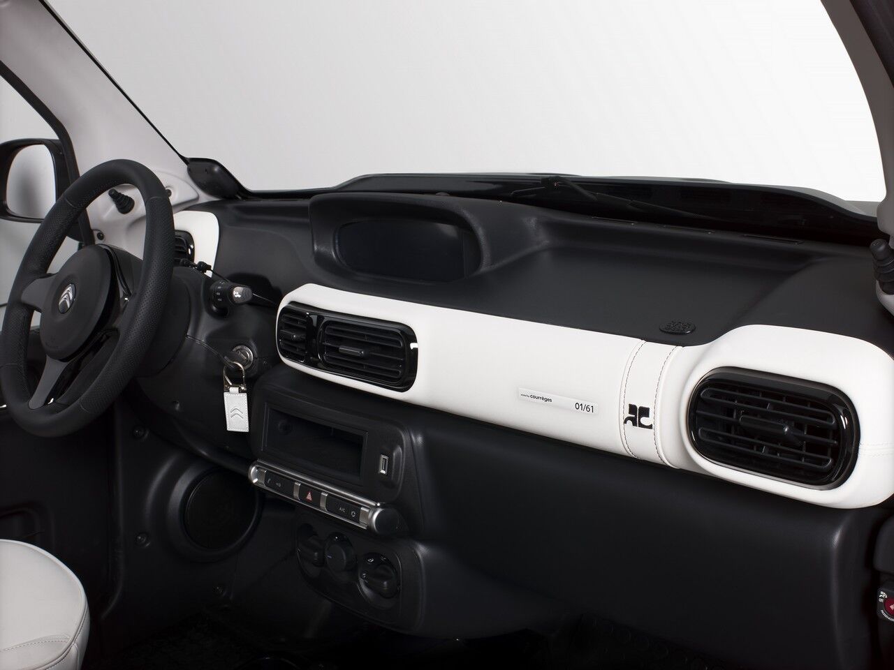 El E-Mehari “Styled by Courrèges” sigue los cánones imperantes en la moda de los coches de lujo y alta gama que ahora apuestan por los contrastes de la combinación del acabado en negro y blanco. La renovación de estilo del E-Mehari sigue las nuevas pautas de estilo marcadas por Citroën en sus últimas realizaciones, al tiempo que incorpora un nuevo salpicadero y nuevos asientos, así como importantes evoluciones en su diseño y nuevos equipamientos, lo que significa un importante avance respecto del E-Mehari que conocíamos. Lamentablemente se trata de una muy exclusiva edición limitada a tan sólo 61 unidades, todas ellas dotadas con una exclusiva bolsa de viajes también en acabado bicolor e igualmente elegante, completamente a juego con la estética del modelo, que la firma de moda enviará directamente al domicilio de los clientes que comprarán el coche.