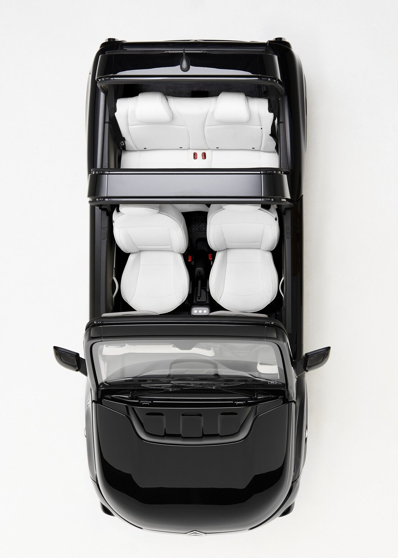 Pura creatividad y elegancia francesa por partida doble. Citroën y la firma de moda Courrèges se han aliado para desarrollar una versión muy especial del eléctrico más polivalente de la marca, el Citroën E-Mehari, que destaca no sólo por el lujoso aspecto y atractivo estilo que ofrece, también por ser la primera vez que vemos al E-Mehari ofrecer un techo rígido, lo que habilita al modelo para su uso en épocas del año donde la climatología no beneficiaba a su planteamiento de carrocería abierta.
