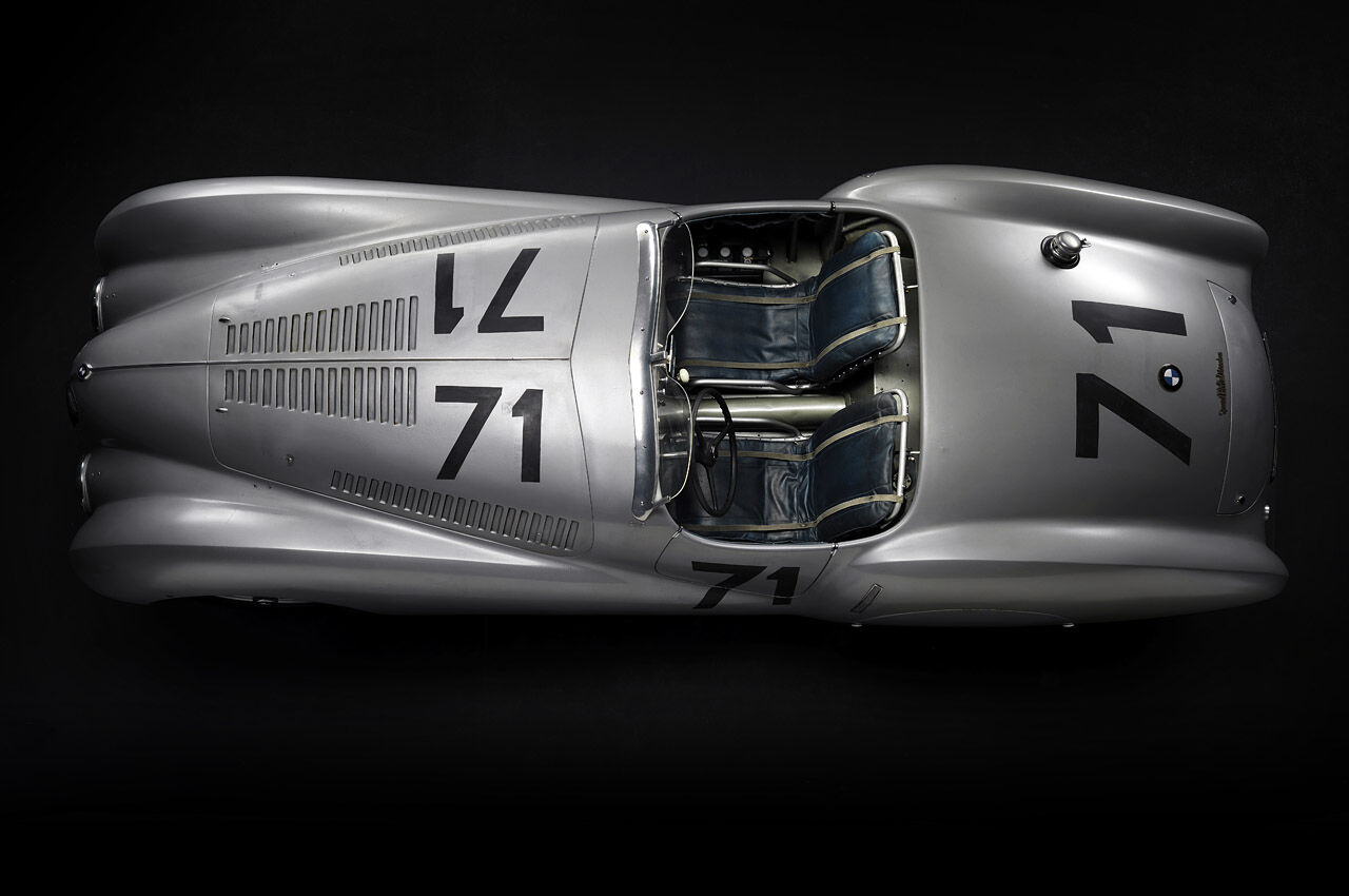 En 1939 BMW decidió reconstruir completamente este automóvil para la Mille Miglia del año siguiente. Se conservó el chasis y la estructura, pero en esta ocasión proporcionaron la base para una carrocería de automóvil de competición totalmente nueva. El resultado fue un concepto de competición que marcó nuevas referencias con su carrocería de aluminio y su silueta aerodinámica. Este automóvil descapotable de competición debe su apodo “Raya de Pantalón” al singular diseño que lucía en la parte superior de sus aletas. Después de la guerra, este Roadster fue a parar a Moscú y finalmente a Letonia, antes de ser adquirido por un comprador en Alemania en 2001.