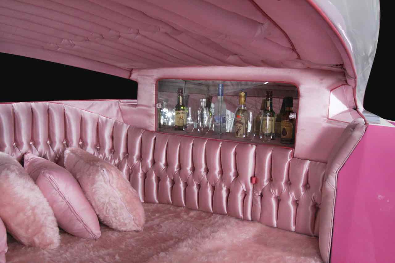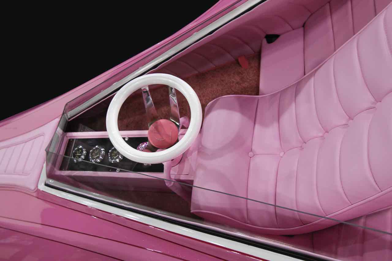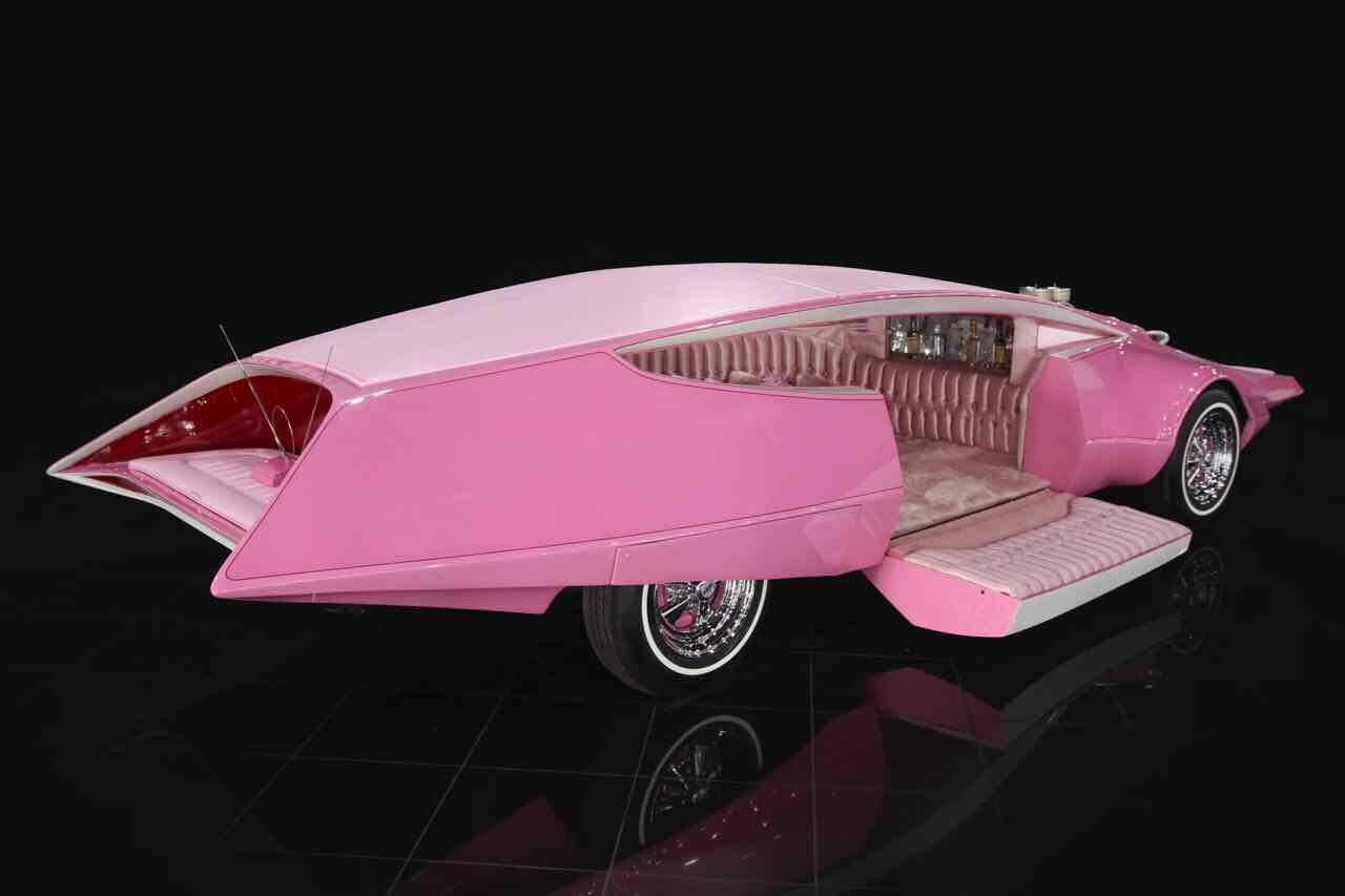 El coche dela Pantera Rosa es inusual en todos los sentidos, incluso para los extraños esténdares de la época. Es muy largo (supera los 7 metros de longitud), de 1,80 metros de anchura máxima y bajo... si bien no era un problema para que el bajo inspector Clousseau y el felino que dió nombre a un bollo subiesen al habitáculo a través de esa puerta que se abría hacia abajo para dar paso a una especie de chill-out que haría las delicias de los amantes del color rosa, pues es el color en el que prácticamente se ha tapizado todo. No falata mini-bar, un teléfono e incluso tenía una cámara de seguridad y pequeñas televisiones «setenteras» en blanco y negro.