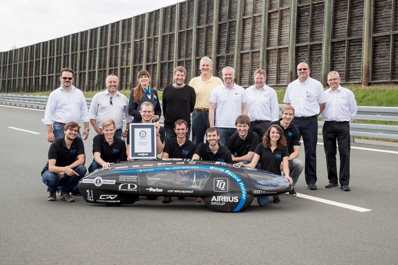 El nombre, lejos de ser original, mantiene el sobrio estilismo alemán y se denomina eLi14 pero no evita que el vehículo haya obtenido la verificación del libro Guinness de los Récords. Los portadores de este nuevo logro son un grupo de estudiantes de la Universidad Técnica de Munich quienes mejoraron las partes técnicas del eLi14 ya existente, presentado en el maratón Shell Eco del año 2014. Para lograr conseguir este logro, mejoraron el motor con un mando de control, colocación de imanes y bobinas de plata.
