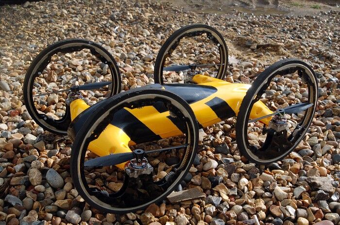 No cabe duda de que los cuadricópteros son cada vez más populares entre los fanáticos de los modelos de radio control. Pero a veces uno podría desear que se moviese también a ras de suelo... Si ese es tu caso, tranquilo, pues el diseñador británico Witold Mielniczek ya ha pensado en ello. Su prototipo de vehículo, conocido simplemente como B, funciona como un cuadricóptero y al mismo tiempo es un vehículo con capacidades off-road.