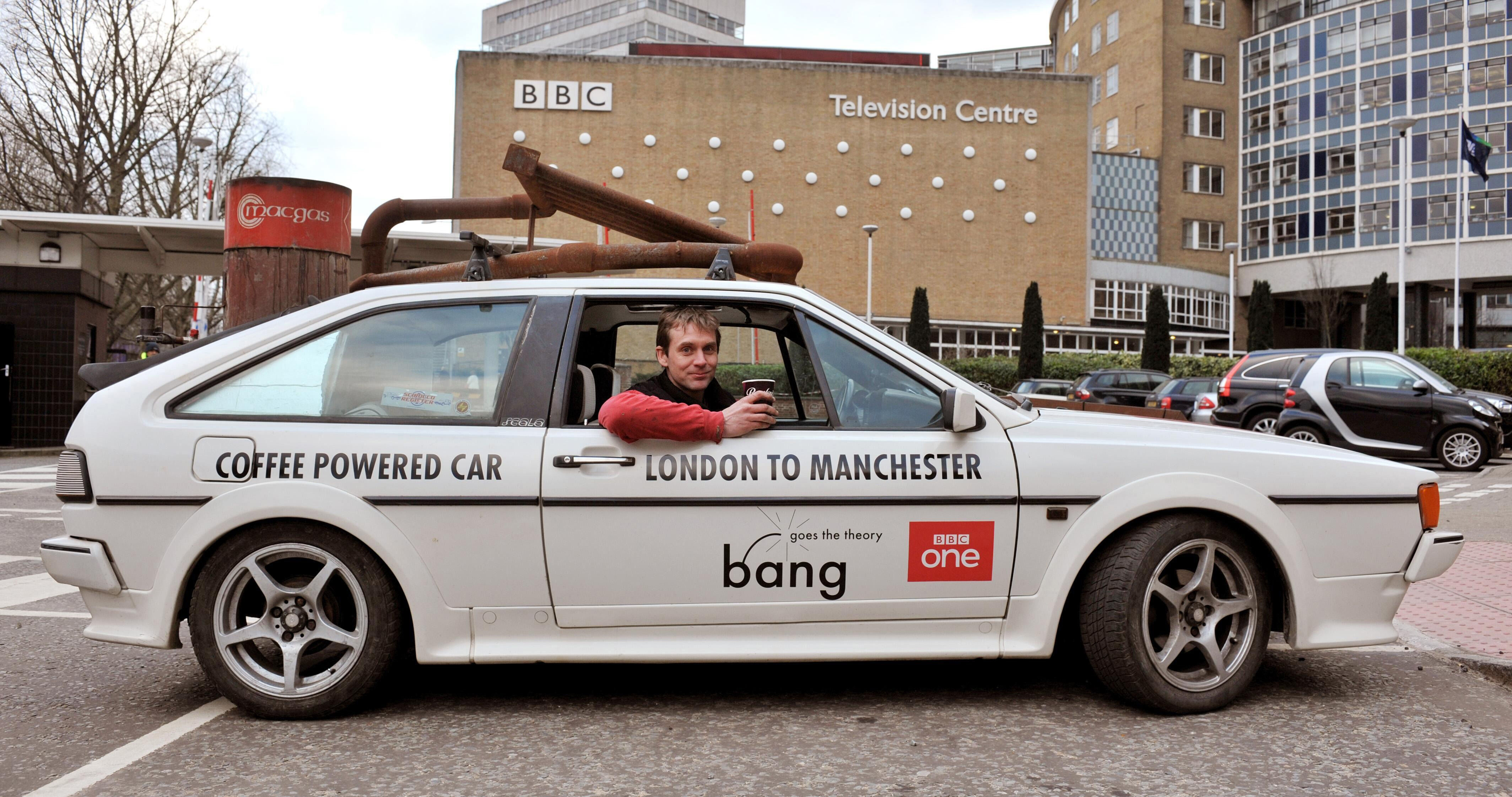 Hace un año, los científicos del programa Bang goes the theory de la BBC se propusieron un reto. Fabricar un coche para ir Londres a Manchester (hay 337 kilómetros entre ambas ciudades). Hasta ahí nada raro. Pero ellos querían que, en lugar de moverse con gasolina, se moviese con la energía que producen los granos de café.