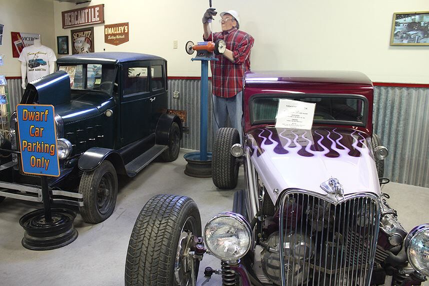 En total, Ernie ha construido siete de estos coches clásicos americanos en miniatura, y como podemos ver en las imágenes, esos son un Grandpa Dwarf de 1928, un Chevy Sedan de 1939, un Ford Convertible de 1942, un Ford Hillbilly de 1929, un Mercury de 1949, un Ford Sedan de 1934 y un coche de carreras.
