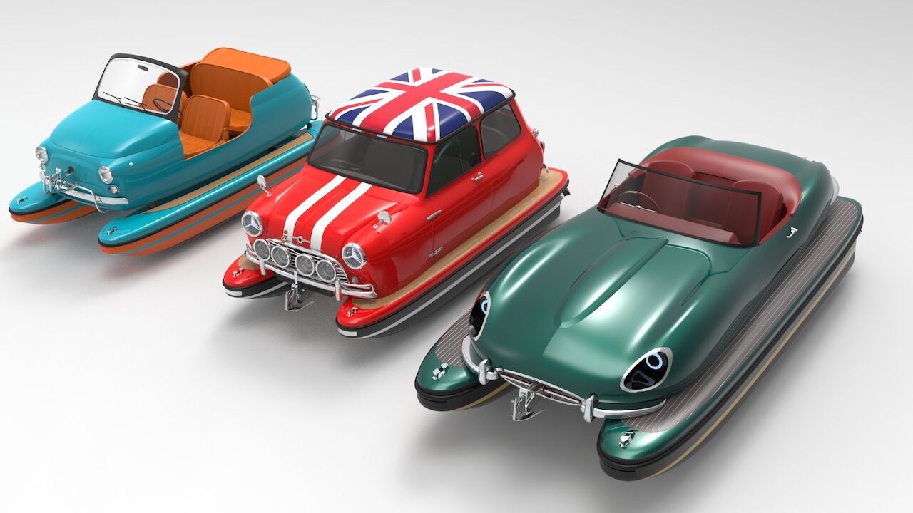 La compañía se llama Floating Motors y se trata de un proyecto del diseñador italiano Pierpaolo Lazzarini, conocido por el estudio de diseño que lleva su nombre. En este caso, el objetivo es aprovechar las carrocerías de algunos coches clásicos para convertirlos en embarcaciones de recreo. Hay varias formas de hacerlo, al estilo catamarán o con hidroalas, en función de las necesidades del cliente. También se ofrecen varios modelos con diferentes potencias.