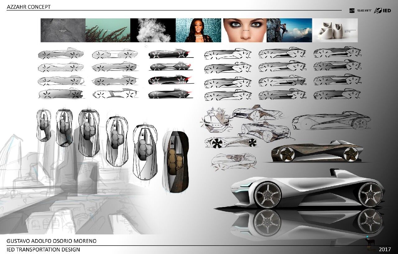 El SEAT Azzahr Concept se trata de un modelo de tres plazas en el que se ha querido reivindicar la imperfección a través de la asimetría. Sigue un estilo barchetta enfocado en el disfrute del clima mediterráneo y cada uno de sus tres asientos sigue un patrón aleatorio. Con este prototipo se incluye un casco de realidad virtual que ayuda a aumentar la experiencia de la conducción. El diseño es de Lorenzo Rauseo (IED Turín), Stefano Malfi (IED Turín), y Gustavo Adolfo Osorio Moreno (IED Barcelona).