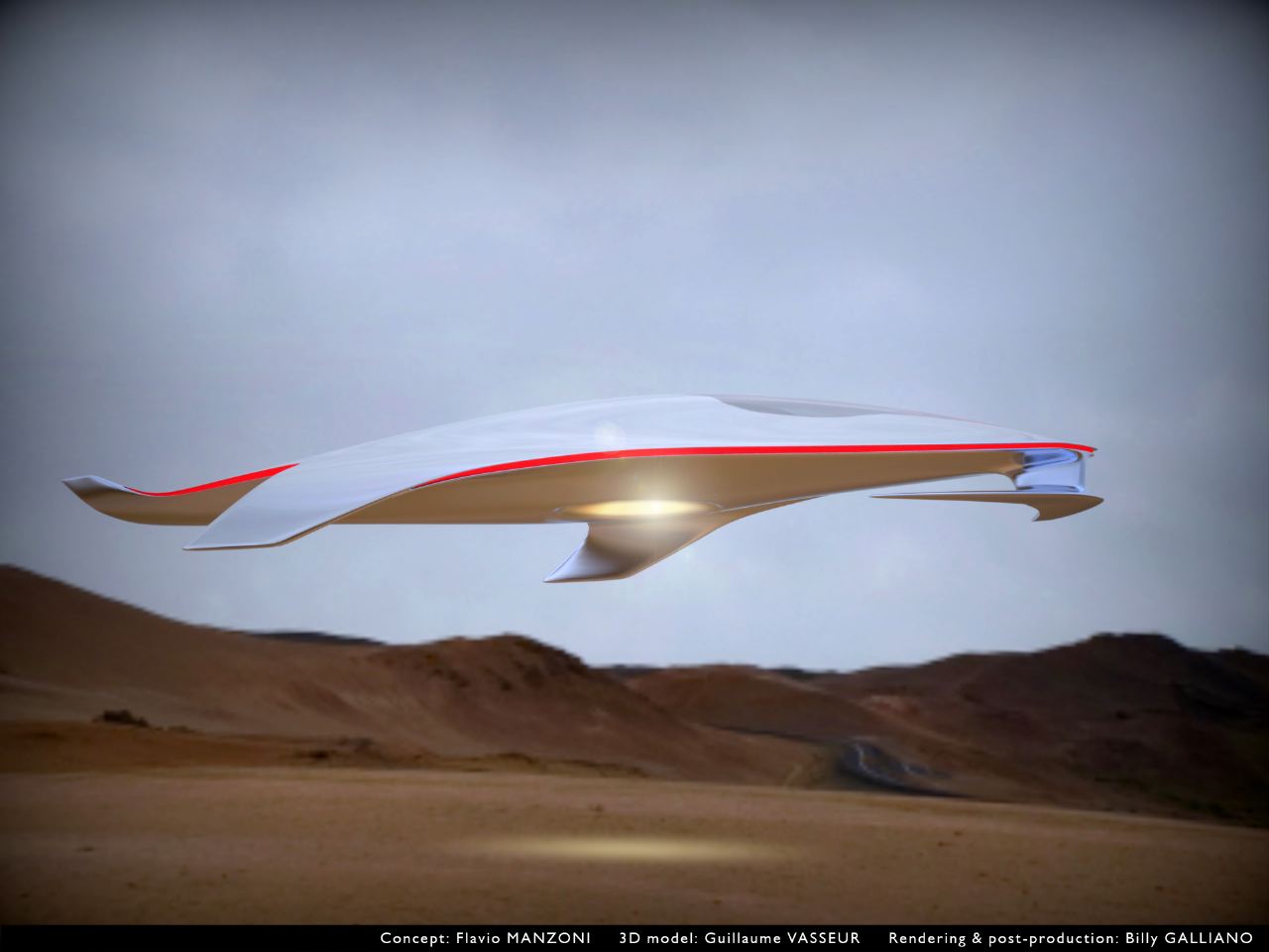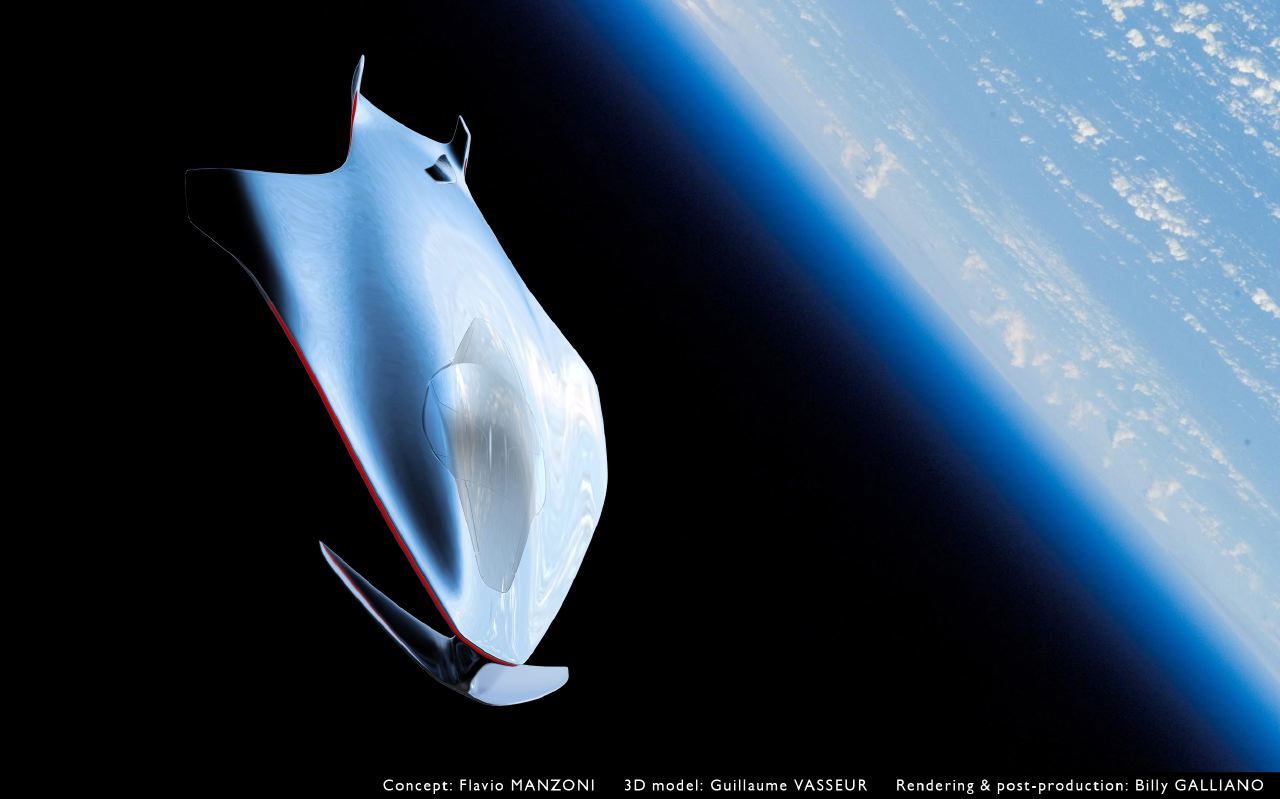 No, no os preocupéis, nadie se ha vuelto loco, se trata de una «idea» graciosa de Flavio Manzoni, jefe de diseño de Ferrari, que también es un apasionado de la ciencia ficción. Todo comenzó con un simple boceto que Manzoni hizo recordando una de sus miedos de pequeño, que un OVNI aterrizara en la azotea del edificio donde vivía en Cerdeña, y dio lugar a una representación, hecha por Guillaume Vasseur y Guglielmo Galliano, de lo que sería una nave espacial de Ferrari, con un diseño elegante, fino, suave y agresivo al mismo tiempo.
