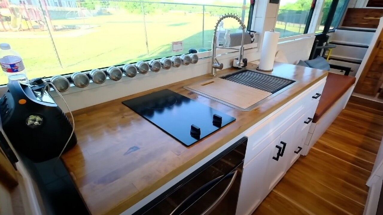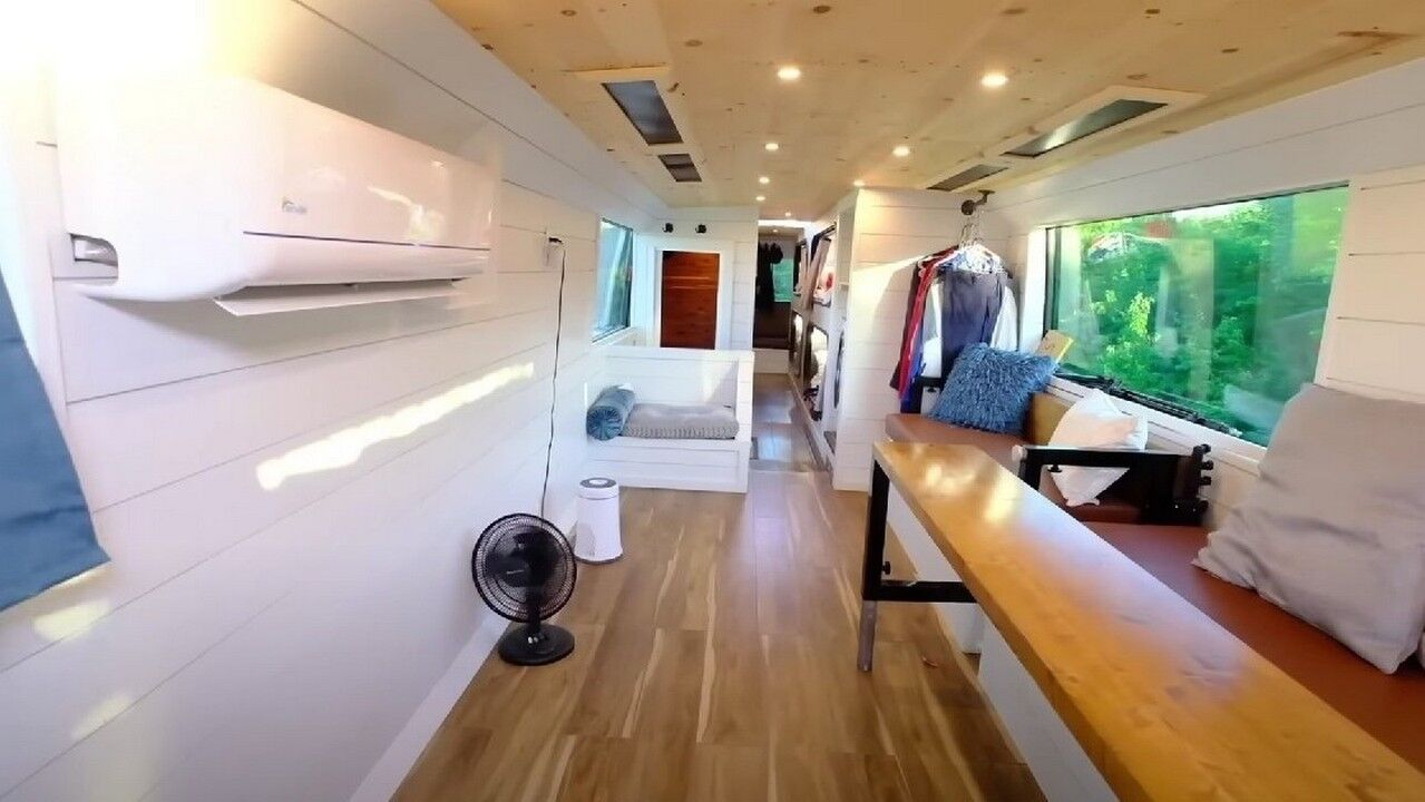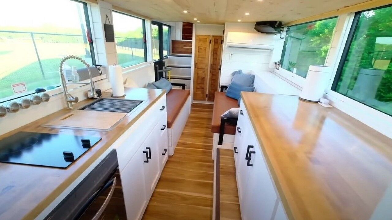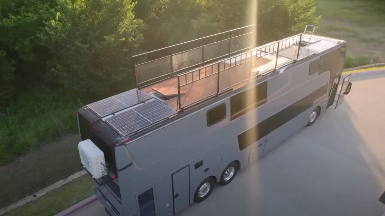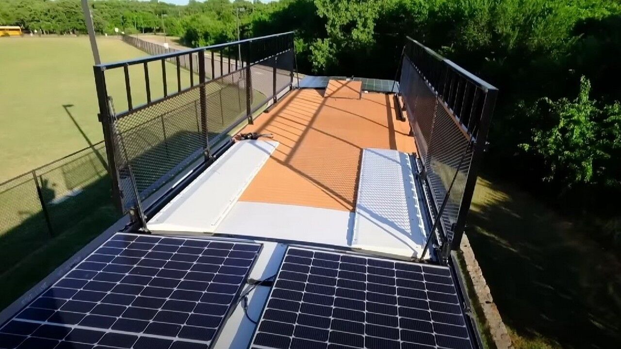 En ese espacio también hacen noches de cine y disfrutan de las impresionantes vistas donde sea que estén estacionados. Notarás que el autobús también tiene cuatro paneles solares de 355 W, muy útiles cuando la familia quiere vivir fuera de la red. Si quieres saber más detalles, recientemente, la familia Eyerly le dio a la gente de Tiny Home Tours un recorrido detallado de su conversión de autobús de dos pisos. Mira el vídeo adjunto a continuación para conocerlos mejor y a su increíble casa de dos pisos sobre ruedas.