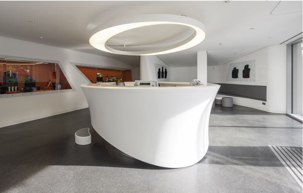El objetivo de estos arquitectos era crear una zona tranquila en la que el comprador de un automóvil nuevo puede familiarizarse con todas las funciones en una atmósfera casi privada. El espacio tenía que ser protegido de la lluvia y la luz solar directa y, al mismo tiempo, permitir que entre suficiente luz para así evitar el uso de la luz artificial, que resulta costosa e innecesaria.