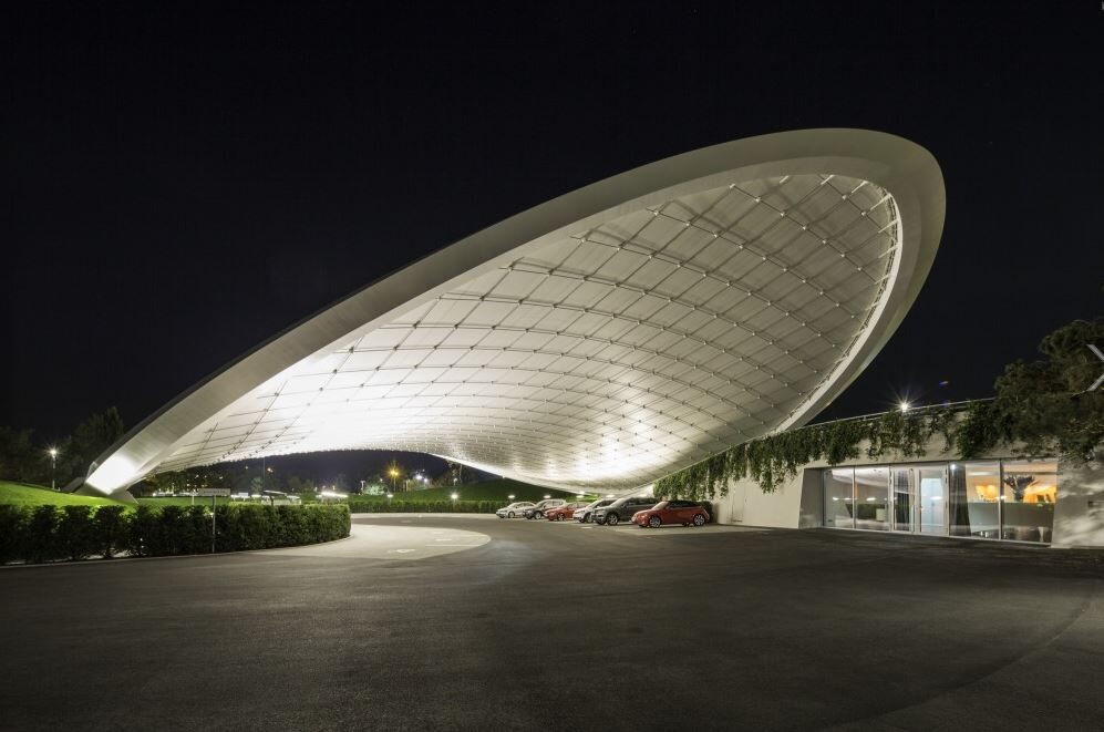 Por otro lado, la estructura forma parte de un espacio de conducción de 15.000 metros cuadrados, donde los compradores pueden probar las características de los vehículos nuevos, incluyendo los sistemas de asistencia al conductor, estacionamiento automático, señal de tráfico reconocimiento y control automático de la distancia de conducción más segura en el tráfico.