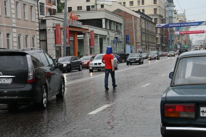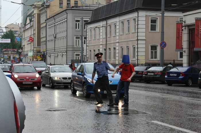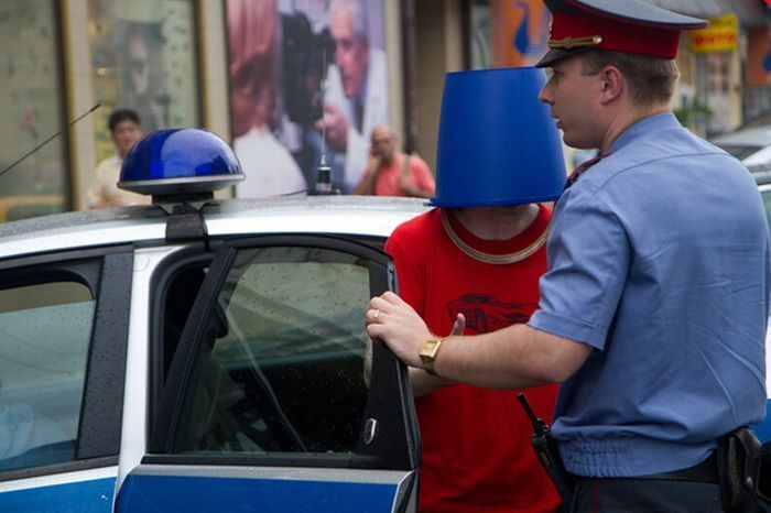 Ponerse un cubo azul en la cabeza y salir a la calle de Moscú para burlar a los altos funcionarios del gobierno es la última novedad de protestas en Rusia. ¿Que contra qué luchan? Contra las élites y políticos que ponen luces azules en sus coches y se dedican a avasallar en la carretera.