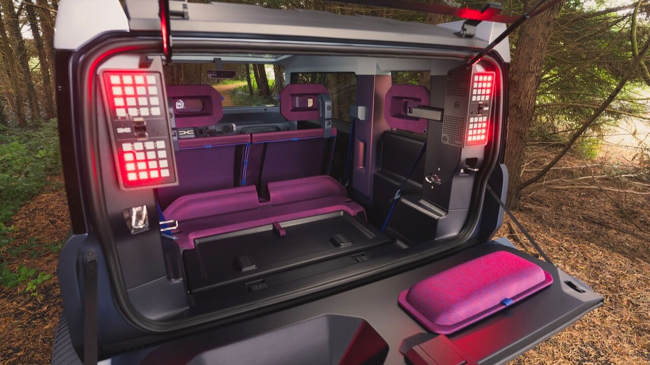 Otro aspecto que busca el Hipster es dar un espacio aprovechable en sus tres metros de largo. Ofrece cuatro plazas, con unas delanteras como las del Sandero de tamaño y unas traseras a las que se accede a través de las generosas puertas, con la posibilidad de abatir el asiento delantero. Dentro vemos componentes ligeros y simples, con ventanillas laterales correderas y accesorios YouClip para que el conductor personalice lo que necesite. Hablan de un maletero de 70 litros como mínimo, que se puede ampliar hasta los 500 litros si solo se usan dos plazas.