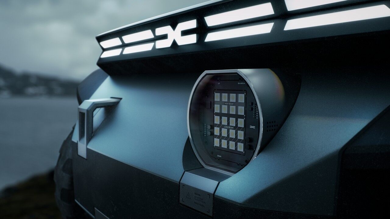 Dacia, sin embargo, ha dado la vuelta a la tendencia. El Manifesto adopta formas de la moda cyberpunk, hasta la iluminación asimétrica, pero toda esa tecnología tiene un nuevo propósito: escapar de la vida urbana. Por fuera, el Manifesto es todo paneles plateados de bordes rectos y piezas decorativas angulares. Tiene barras de luces de ancho completo delante y detrás, algo muy de moda actualmente, y la zaga es una variedad asimétrica de rectángulos y líneas duras. Es, claramente, un vehículo para hoy y para nuestro propio futuro oscuro.