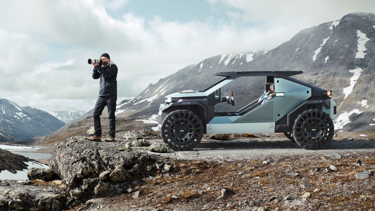 A nivel técnico, lo más destacado es un juego de grandes neumáticos sin aire que son a prueba de pinchazos y respetuosos con el medio ambiente, los cuales duran tanto como el vehículo. Las ruedas expuestas están ubicadas en las cuatro esquinas del vehículo y ofrecen credenciales todoterreno casi imbatibles. En combinación con un tren motriz eléctrico (cuyas características son desconocidas) y un sistema de tracción total, su corta distancia entre ejes y una generosa distancia al suelo, el Dacia Manifesto promete ser increíblemente capaz.