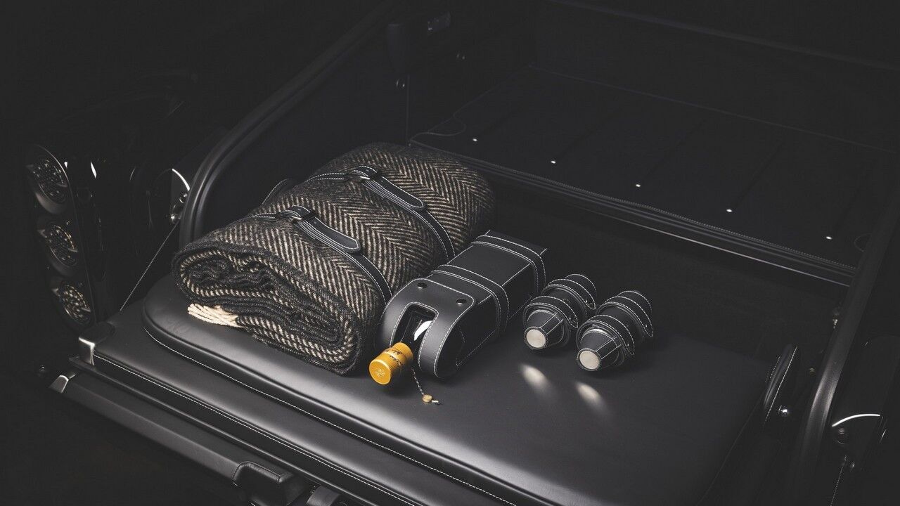 El ahora famoso asiento de picnic desplegable del DBA Speedback (sí, como en los Range Rover o el Rolls Royce Cullinan) también está presente, desplegándose teatralmente desde el suelo del espacio de carga. Así lo especificó el nuevo propietario, junto con un juego de picnic encargado especialmente, que incluye una manta de lana hecha a medida, un portabotellas de cuero para whisky y petacas con adornos de cuero, lo que, de acuerdo con la entidad inglesa, lo convierte en la última interpretación moderna del “Gentleman’s Express” británico.