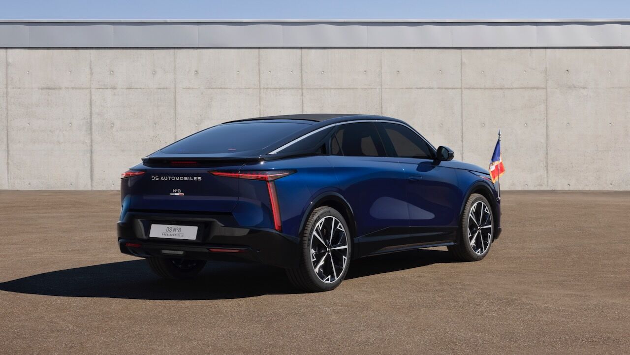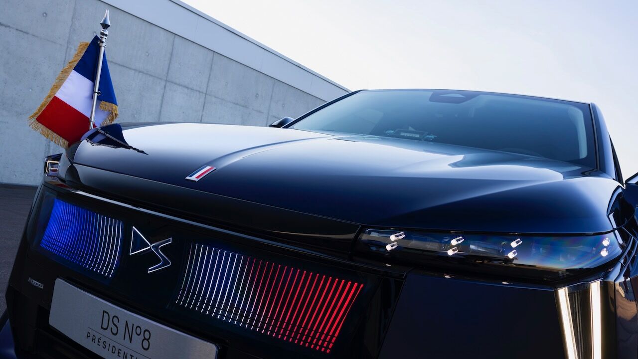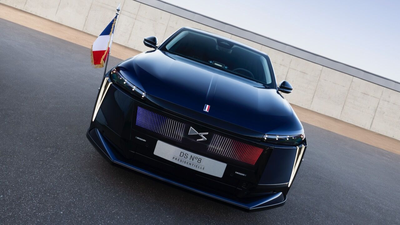 Lo cierto es que no había otro modelo mejor para llevar a cabo la tarea de transportar a un presidente francés. El DS Nº 8 se ha convertido en el buque insignia de la marca, con esa fusión entre SUV y berlina, un mayor nivel de calidad y la apuesta por la electrificación. De hecho, se ha convertido en el primer vehículo presidencial totalmente eléctrico después de que el anterior DS 7 fuera híbrido enchufable. Este DS Nº 8 Présidentielle cuenta con hasta 350 CV de potencia en su versión de tracción total y presume de autonomías que van desde los 572 hasta los 750 kilómetros en la variante Long Range.