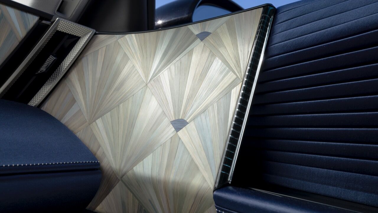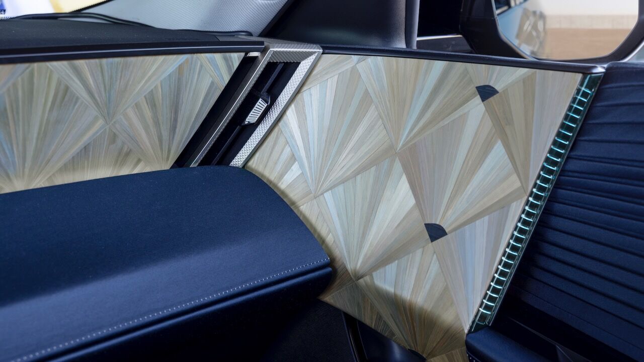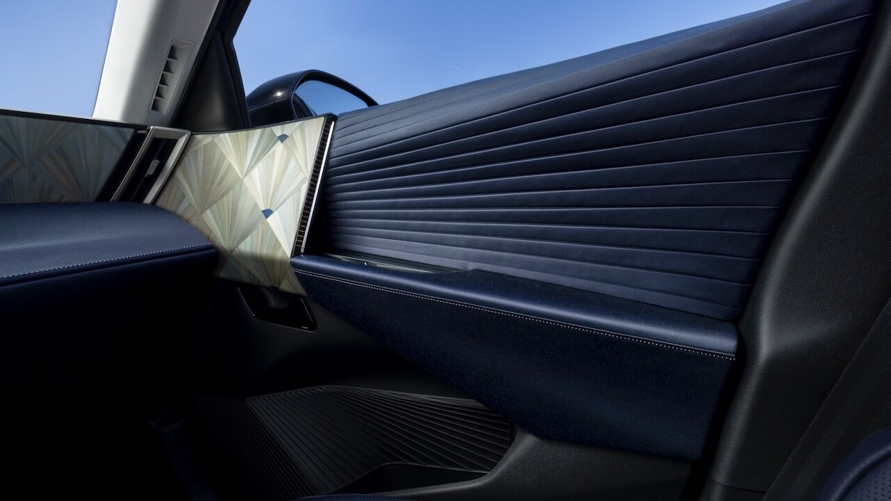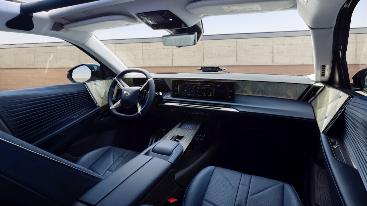 En el interior vemos una mayor concesión al lujo. Es digno del presidente francés gracias a una marquetería de paja de centeno que ha sido realizada artesanalmente por Lison de Caunes. A eso hay que sumar algunos revestimientos de satén Dream Blue hechos por Métaphores, una firma de la rama textil de Hermès. Por no hablar del tejido plisado de las puertas, hecho por Atelier Lognon, o la ya destacada tapicería de cuero Nappa diseño correa de reloj y Alcántara que es propia de DS y que también va en color Dream Blue.
