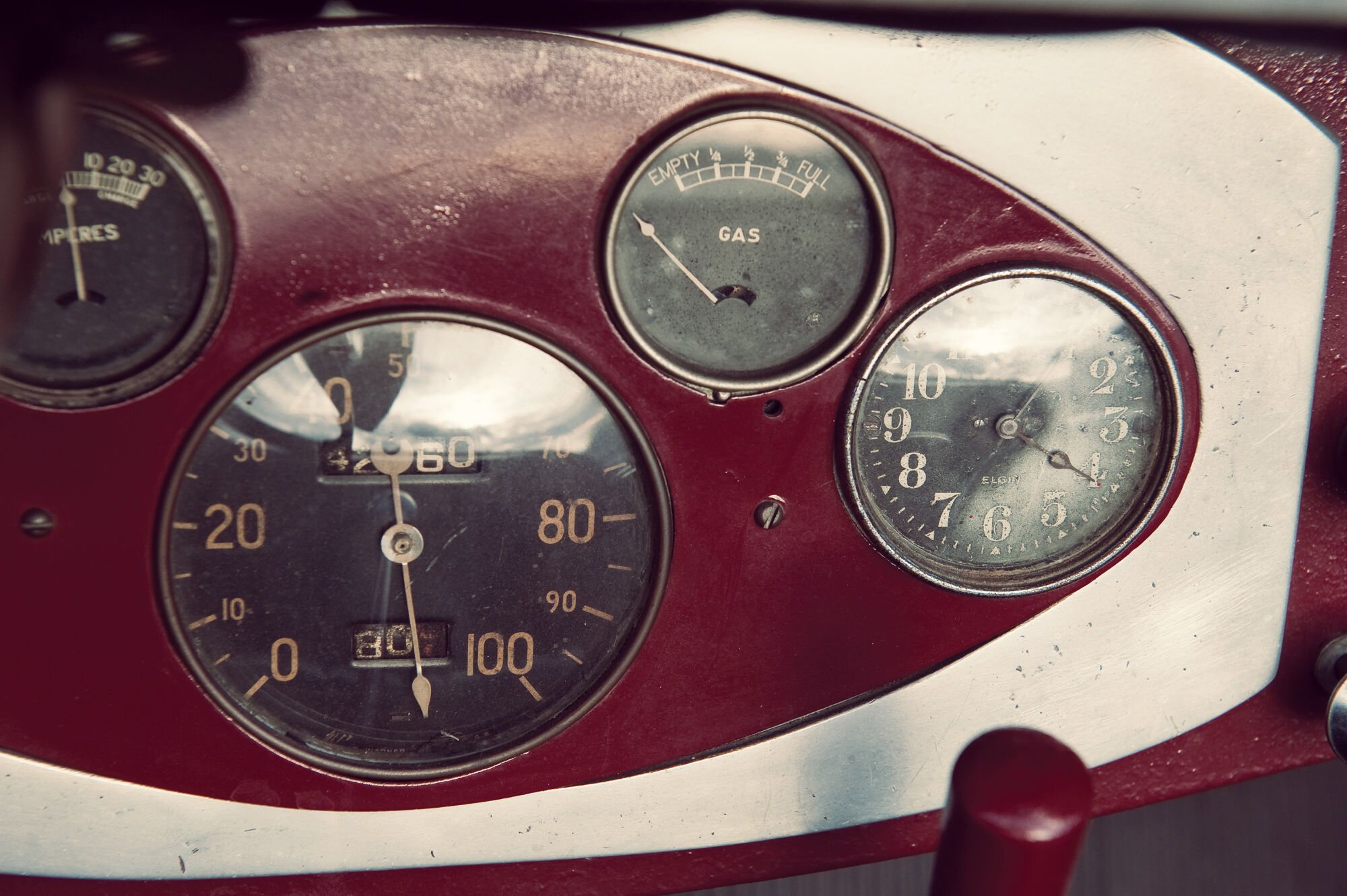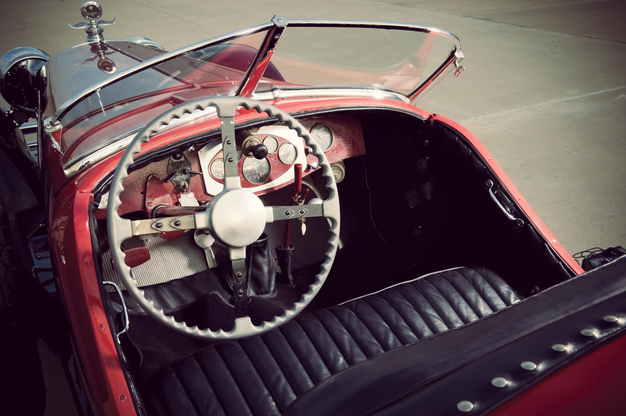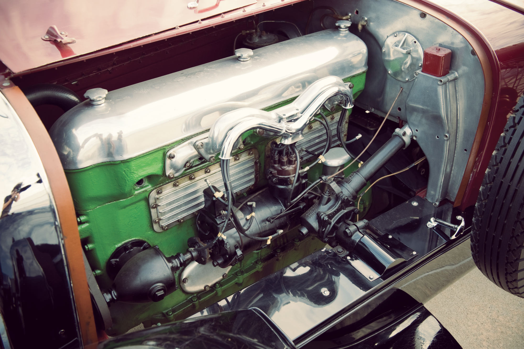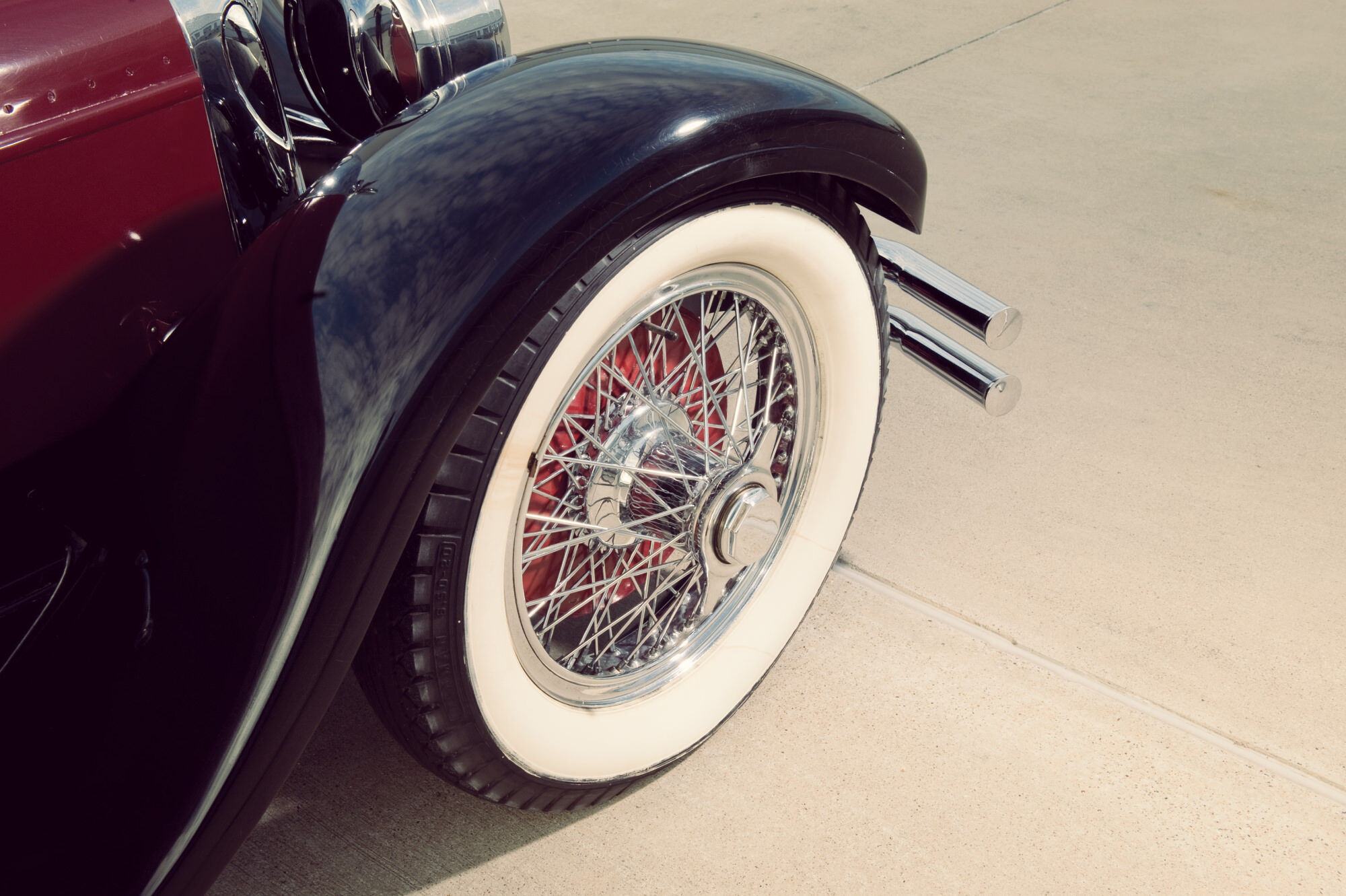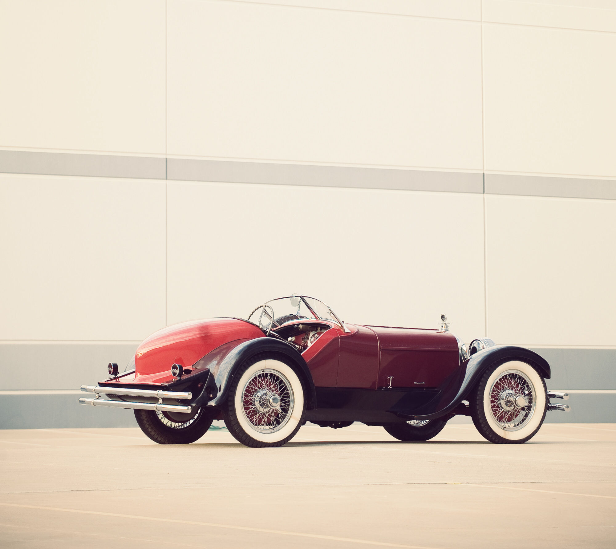 Tal y como lo vemos hoy en día, el coche ha sido modificado ligeramente desde su «configuración Brandfon», pero con su color burdeos bitono, los guardabarros negros, ruedas de alambre cromado de 20 pulgadas y los neumáticos anchos de banda blanca, da gusto verlo. La casa de subastas, además, cuenta que sus actual dueño ha disfrutado de él regularmente, así que su excelente mecánica seguirá afinada.