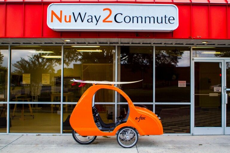Este novedoso transporte, que ha sido fabricado por la empresa Nu Way 2 commute, se ha construido tomando como base un triciclo reclinado Terra Trike Rover. Sobre él se ha añadido un armazón de fibra de vidrio. Como el resto de los coches, el e-fox tiene un parabrisas delantero y presenta una luneta trasera de plástico transparente que se puede enrollar. El conjunto pesa 60 kilogramos y puede llegar a cargar hasta 122 kilogramos, lo suficiente como para un pasajero y su equipaje.
