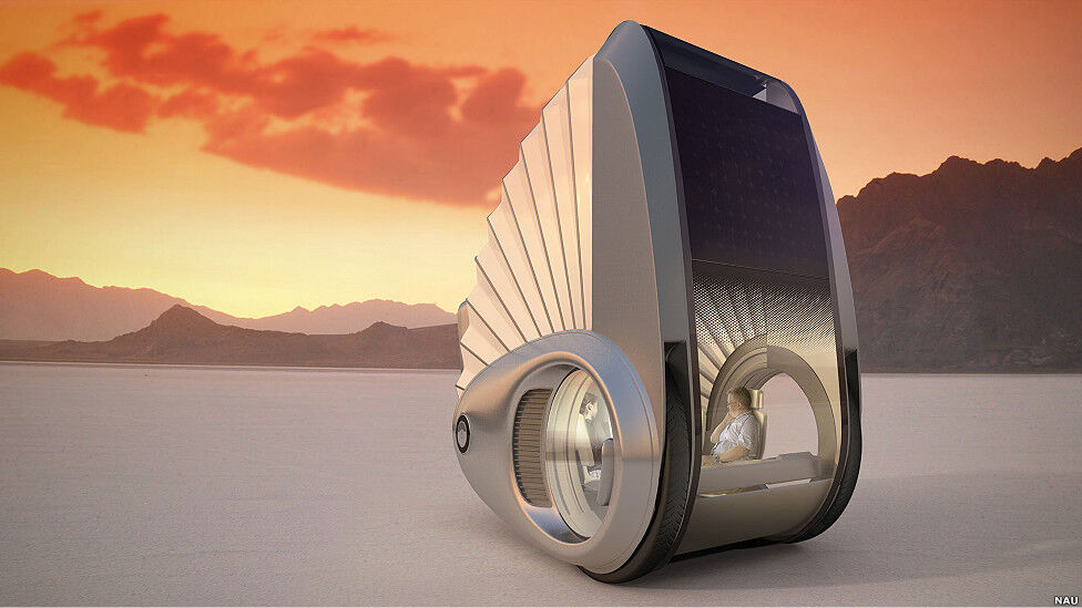 Se trata de una especie de autocaravana con la doble funcionalidad de servir como un espacio habitable, aunque por el tamaño no parece muy adecuado para familias numerosas. El diseño de perfil alargado tiene su razón de ser para reducir la resistencia al viento y ahorrar energías.