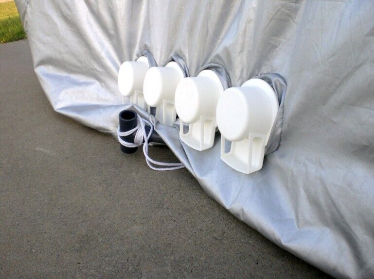 La cubierta está formada por dos capas. La primera cubre las ruedas y pasa con unas correas por los bajos del coche, mientras que la segunda se encarga de la protección exterior. Se infla a través de cuatro ventiladores que funcionan con un pequeño compresor que el propietario activa mediante un pequeño mando a distancia.