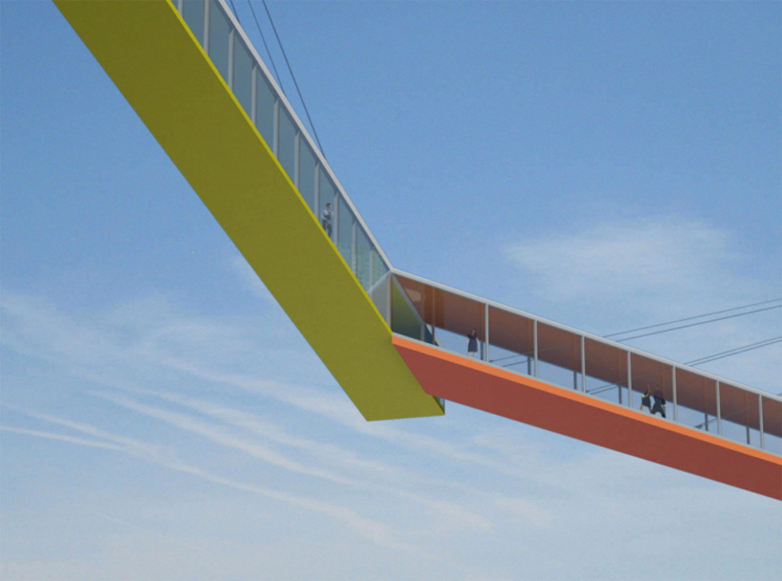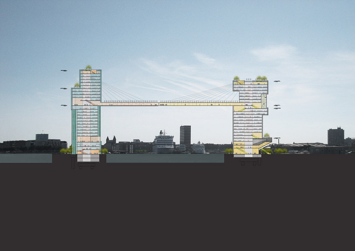 Este carril bici estará suspendido a 65 metros de altura, por lo que te puedes hacer una idea de las espectaculares vistas que tendrán los ciclistas que circulen por él. La construcción será sostenida por dos rascacielos que estarán ubicados uno en cada orilla del río. El diseño del puente sería bicolor: naranja y amarillo.Colores que también lucirían sus respectivos rascacielos. Cada uno de ellos, ofrecería las vistas desde un punto de vista diferente. Mientras que el rascacielos naranja mostraría las vistas del mar, el amarillo otearía el horizonte de la ciudad. Con esta extravagante construcción quedarían unidas las dos orillas de un puerto inconexo por el momento.