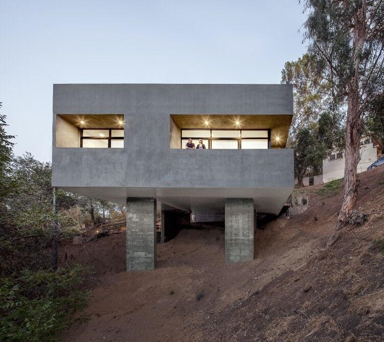 La Car Park House, como ha sido bautizada, está colocada sobre pilotes de hormigón para que fuese necesario realizar menos cimientos. Así además, según aseguran los arquitectos, da la sensación de que la casa «flota sobre la ladera.