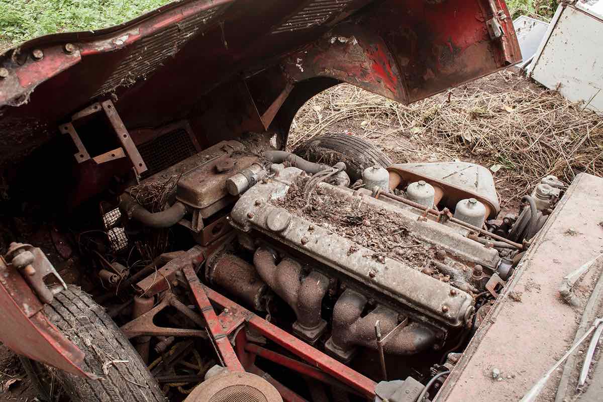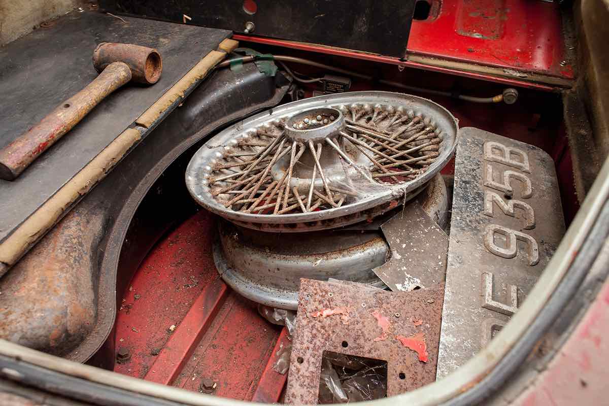 En esta ocasión, un garaje en Cheshire, en el noroeste de Inglaterra, ha guardado durante cuarenta años un Jaguar E-Type 3.8 Coupé de 1964, bastante deteriorado, pero que pide a gritos volver a la carretera tras su letargo.
