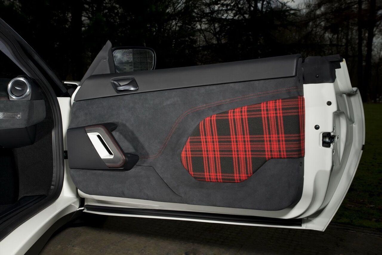 Más espectacular (a la vez que retro) en este Evora es el interior. Partes de ambos asientos y los paneles de las puertas están tapizadas una tela estilo tartán En la consola central y el tablero es