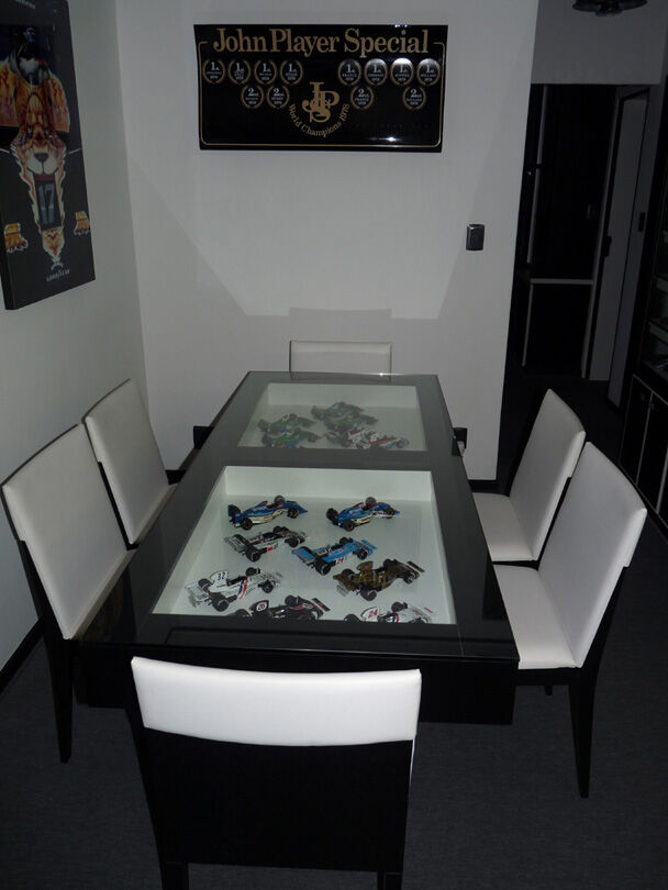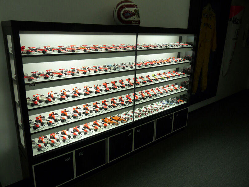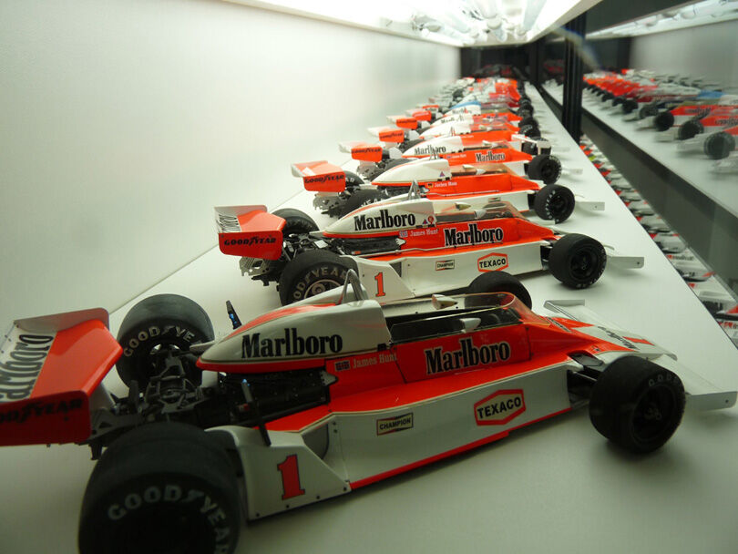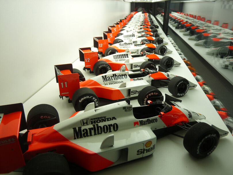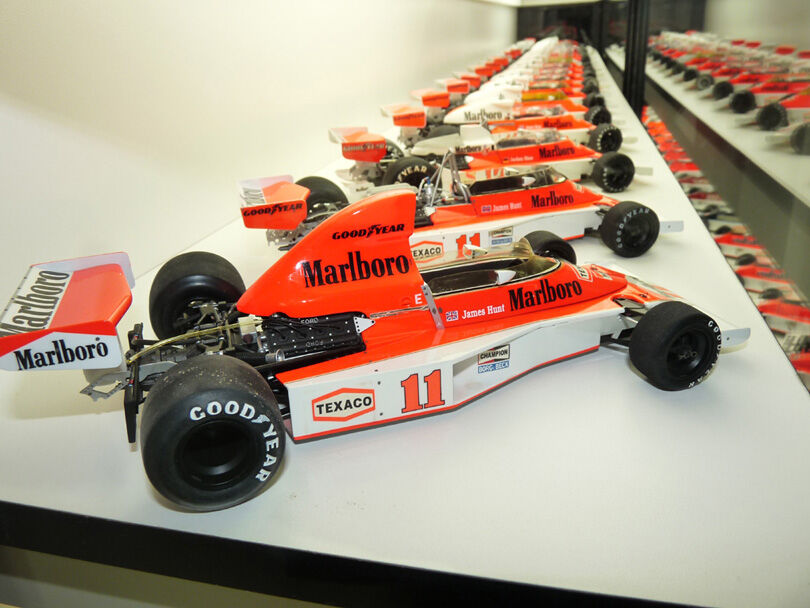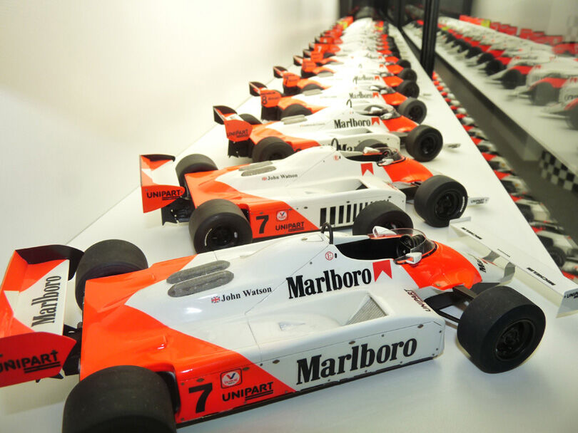 Muchos de las piezas de esta colección son compradas, pero él ha construido con un amigo, Alessandro Ribeiro, unos 500, a lo largo de los últimos 12 años. Y no lo hace mal, desde luego. Si te fijas en las fotos, podrás ver cómo recrea los logos de Marlboro en los monoplaza. Hoy la publicidad de tabaco está prohibida... Pero es parte de la herencia histórica de este deporte del motor y como buen fan, no reniega del pasado. Mrtspeed dice que sigue haciendo con su amigo maquetas y que ahora mismo trabajan en varias.