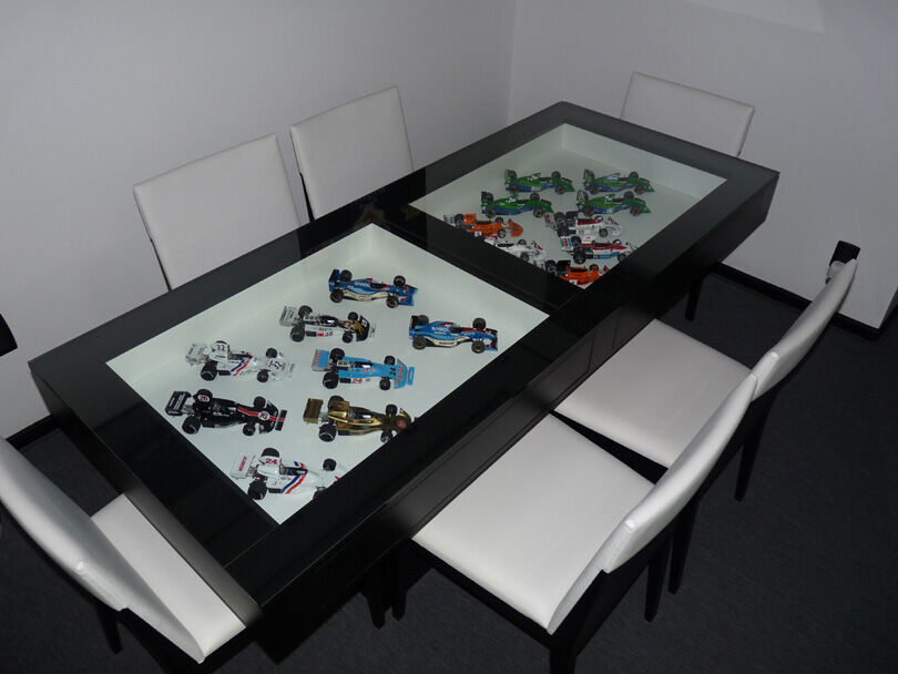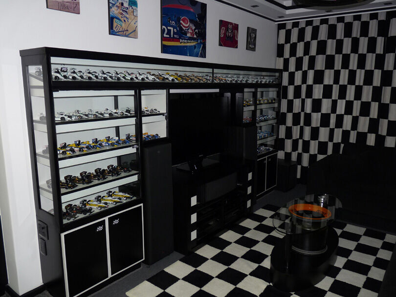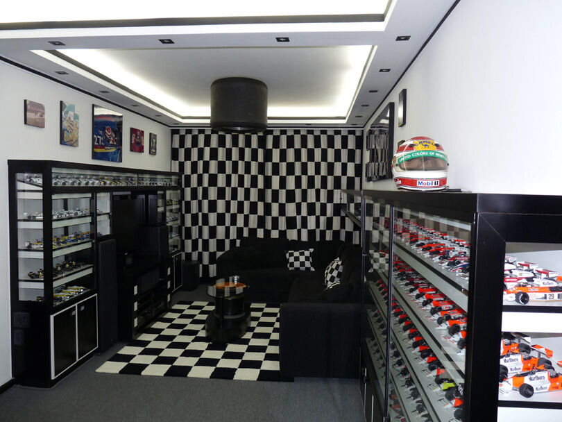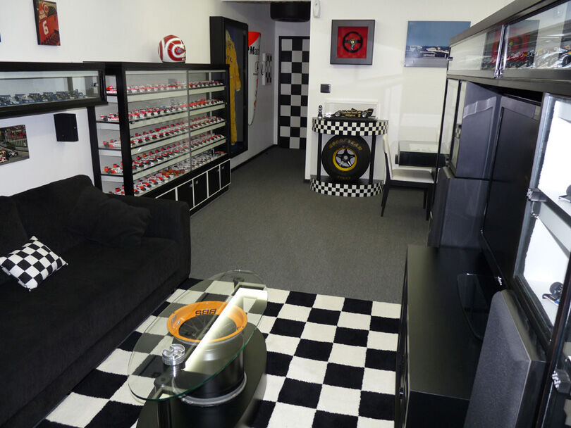 Pero su afición va mucho más allá. Se separó hace 9 años de su mujer, así que desde entonces ha aprovechado para llevar su pasión más allá de las estanterías repletas de maquetas y convertir toda su casa en una especie de santuario de la Fórmula 1. Según cuenta el porpio Michael, su afición no fue la causa de su divorcio, pero parece que con una semejante afición, poco tiempo podríad edicarle a su mujer.