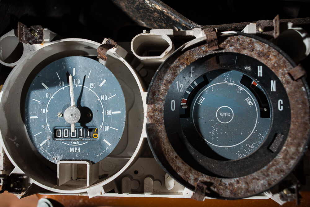 Aunque se ha recuperado algo de la carrocería (el capó y el techo estaban totalmente hundidos cuando se encontró), este Mini Clubman 1275 GT tiene la carrocería oxidada y muy dañada. Por supuesto, tampoco es aprovechable nada del interior y, a pesar de tener apenas 11 millas en su odómetro vemos casi imposible recuperar piezas mecánicas.