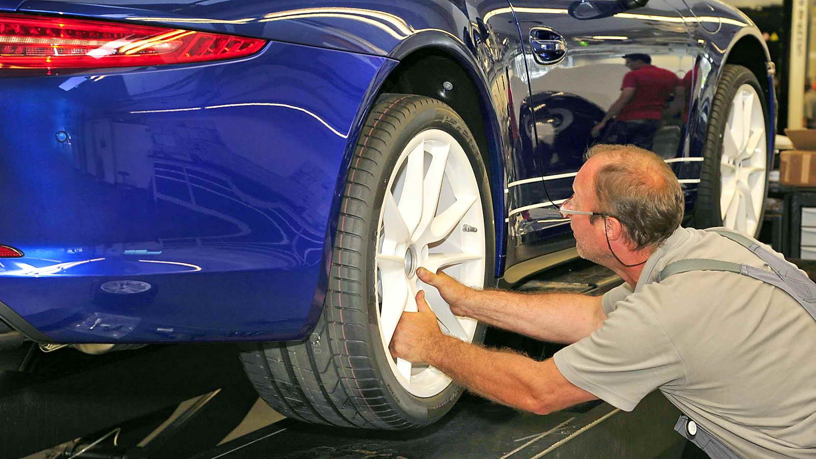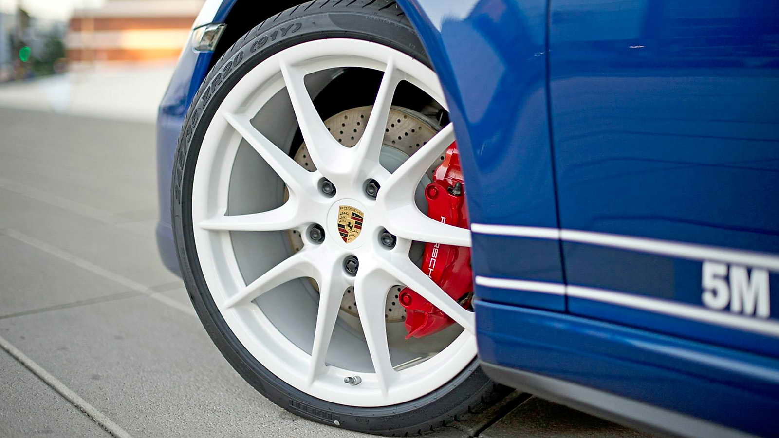 Este especial Porsche 911 Carrera 4S se ha pintado en un llamativo color denominado Aquablaumetallic y además se ha instalado numeroso equipamiento adicional como, por ejemplo, unas llantas Carrera S de 20, de 5 radios dobles, con un acabado de pintura específico en color blanco, que acentúa el carácter deportivo de este modelo, montándose neumáticos en medidas 245/35 ZR 20 delante y 295/30 ZR 20 detrás. Los cubos del centro de las llantas, con el escudo Porsche en color, le aportan la dosis justa de distinción.