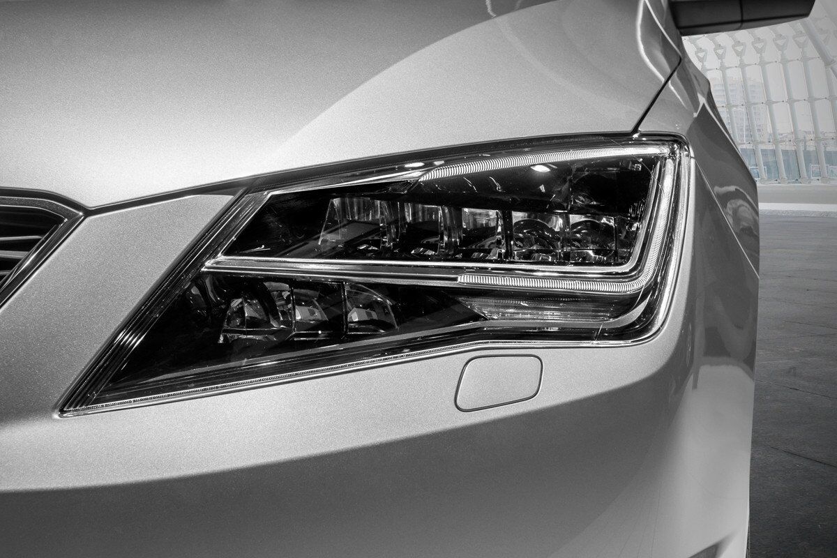 El contorno de las luces de posición y de circulación diurna del SEAT Toledo lo conforman dos LEDs blancos en cada unidad. Nueve LEDs amarillos integrados en cada lado hacen la función de intermitente. Las luces de posición contienen seis módulos, mientras que al encender las luces largas se activan tres potentes LEDs adicionales y el haz de las luces de posición se eleva. Por otra parte, los faros de LEDs integrales no necesitan ningún tipo de mantenimiento y su vida media es igual a la vida útil del vehículo.