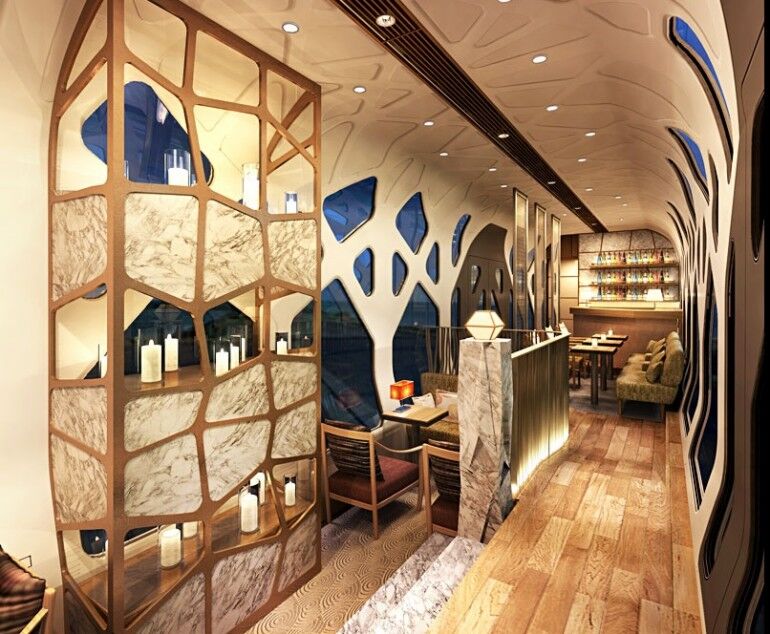 Y con un diferenciador más que notable, el último vagón será de cristal en gran parte y tendrá un sofá alargado aislado en el centro, para que los afortunados que puedan costearse un billete tan caro, tangan la posibilidad de sentarse a ver el paisaje como nunca antes lo habían hecho.