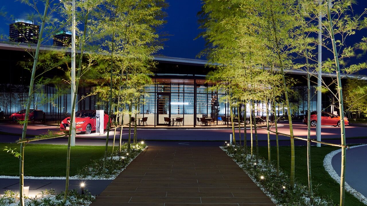 Es un centro de exhibición para hacer alarde de sus tecnologías y tiene la peculiaridad de tener neutralidad de carbono. Eso se consigue utilizando solamente energías limpias, como por ejemplo la solar que proviene de los paneles instalados en su techo o de la hidroeléctrica renovable. También tomará prestada la electricidad de los coches eléctricos que lo visiten, siendo la forma de pago de su parking.