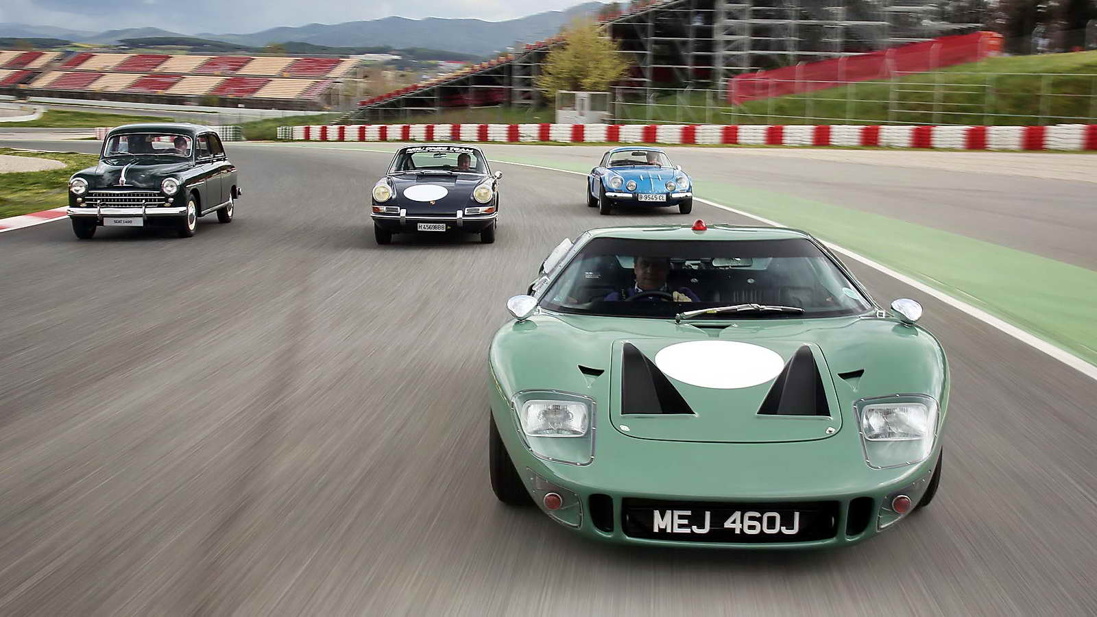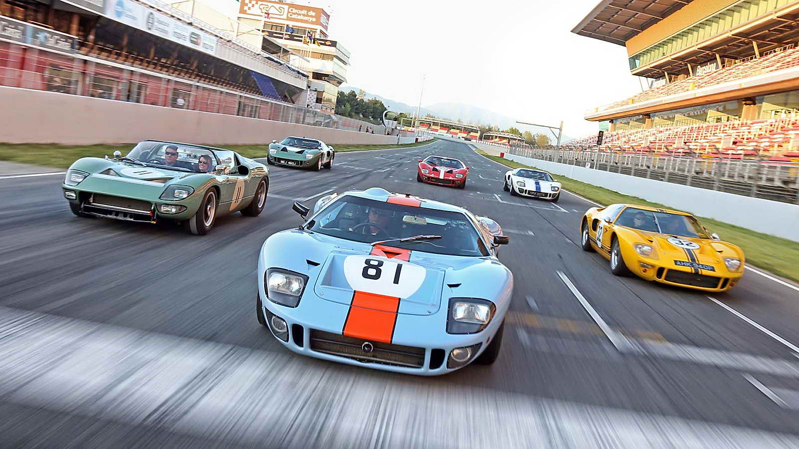 Por lo que respecta al primero de ellos se reunieron, por vez primera en España, una docena de unidades venidas de diversos países para la ocasión. Pero no sólo se pudieron admirar de cerca por parte de los aficionados, sino también seguir sus evoluciones en la pista barcelonesa. Recordemos que este modelo de Ford fue la respuesta de la firma norteamericana al incontestable dominio por parte de Ferrari en las 24 horas de Le Mans, así como a la negativa final, de «il Commendatore» Enzo Ferrari, de vender la empresa más conocida de Italia a la multinacional estadounidense, cuando ya estaban muy avanzadas las conversaciones.