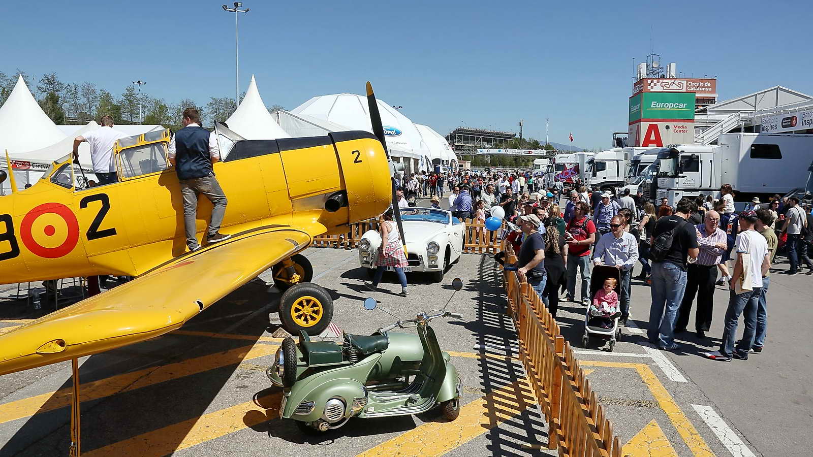 Por último, no podían faltar las espectaculares exhibiciones aéreas, que se desarrollaban al mediodía de cada una de las tres jornadas, donde los aficionados podían disfrutar de las “pasadas” sobre el Circuito de Cataluña de algunos de los más bellos aviones clásicos, pertenecientes a diferentes colecciones privadas.