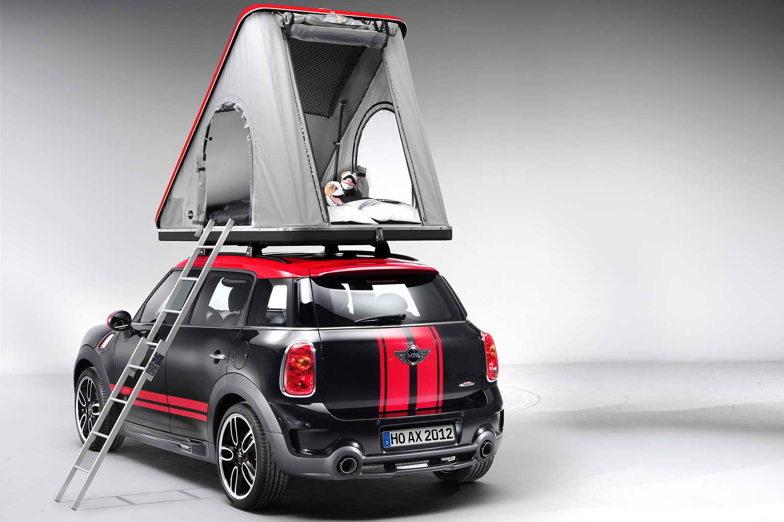 Si por el contrario lo tuyo son los caminos polvorientos, las rutas de montaña intransitables por la nieve o llegar a lugares remotos, puedes optar por montar la tienda “Swindon” en las barras del techo de un MINI Countryman ALL4 y reírte de las dificultades. Esta tienda esta dotada de una superficie lo suficientemente amplia como para que puedan dormir dos personas sin apreturas. Además gracias a su baja resistencia aerodinámica (una vez cerrada) y su sólida construcción, no supone impedimento alguno para realizar una conducción todo lo extrema que necesites para alcanzar tu destino. Al actuar la carcasa superior como “techo” y estar totalmente impermeabilizada, se convierte en un “refugio” de lo más apetecible para descansar de las actividades “outdoor” que tanto te gustan. Por supuesto, entre los numerosos accesorios disponibles se encuentra una escalera telescópica de aluminio con la que facilitar la entrada a la tienda. La decoración de la cubierta superior está realizada en un llamativo color Chili Red (hasta ahora solo disponible en los modelos John Cooper Works)