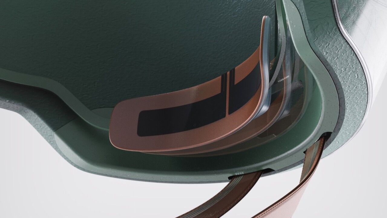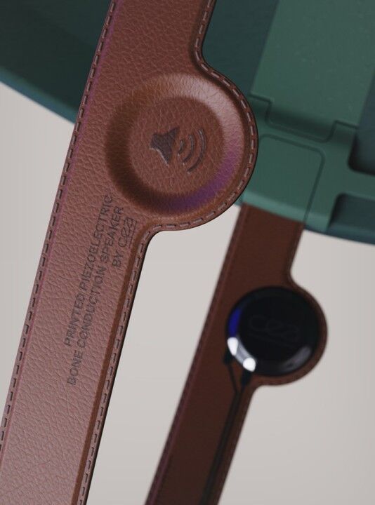 Los auriculares piezoeléctricos del casco de Werteloberfell, también impresos en 3D, se activan al presionar sobre las correas de cuero, mientras que una forma con un pequeño relieve asegura que la superficie del altavoz esté ligeramente presionada contra el sección de delante de los oídos de aquel que lo maneja. Estos se conectan a través de bluetooth de cualquier smartphone y transmiten el audio que deseemos sin tener que reducir la atención de los ocurrido alrededor.
