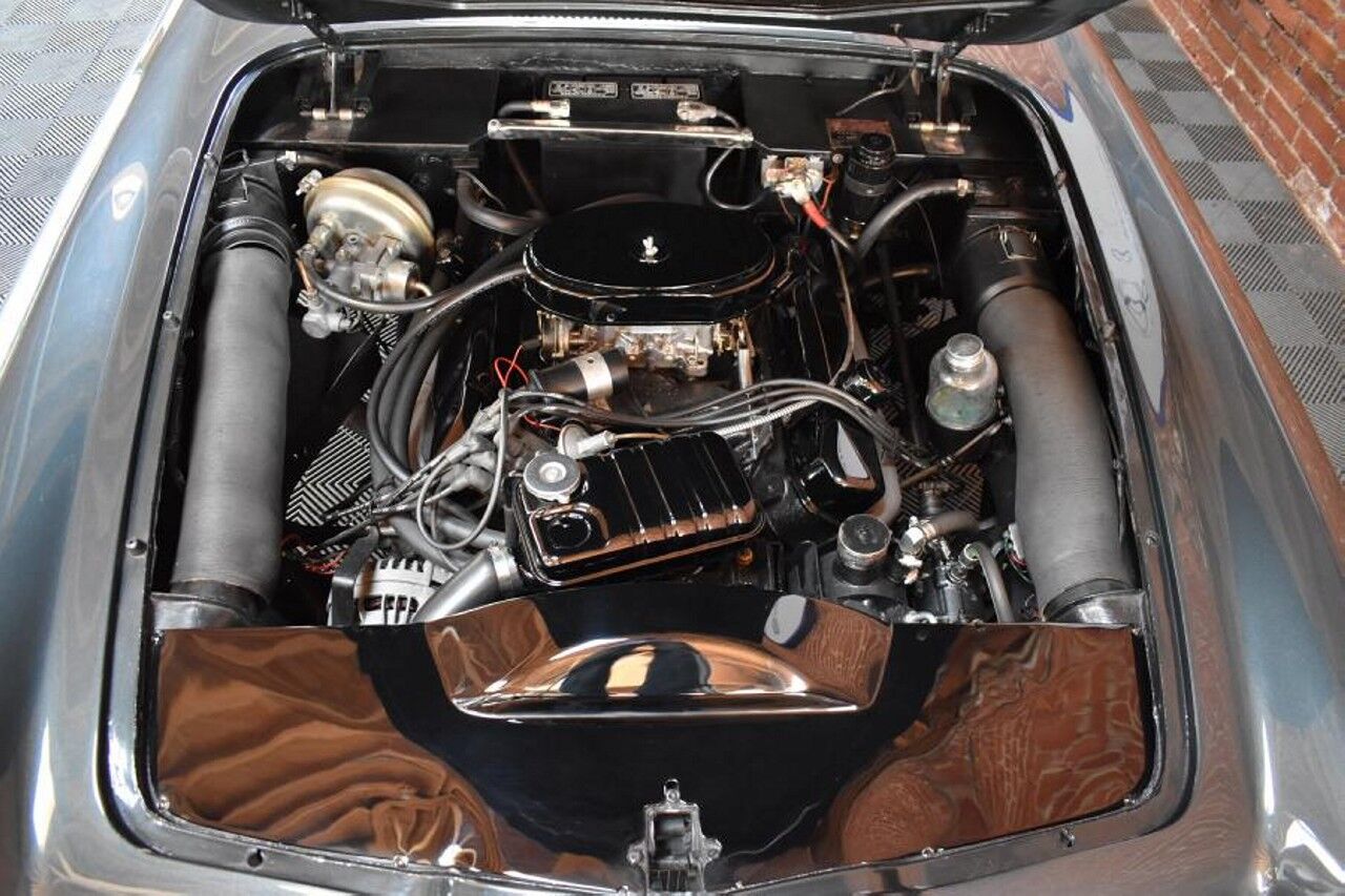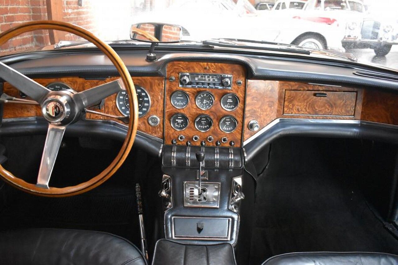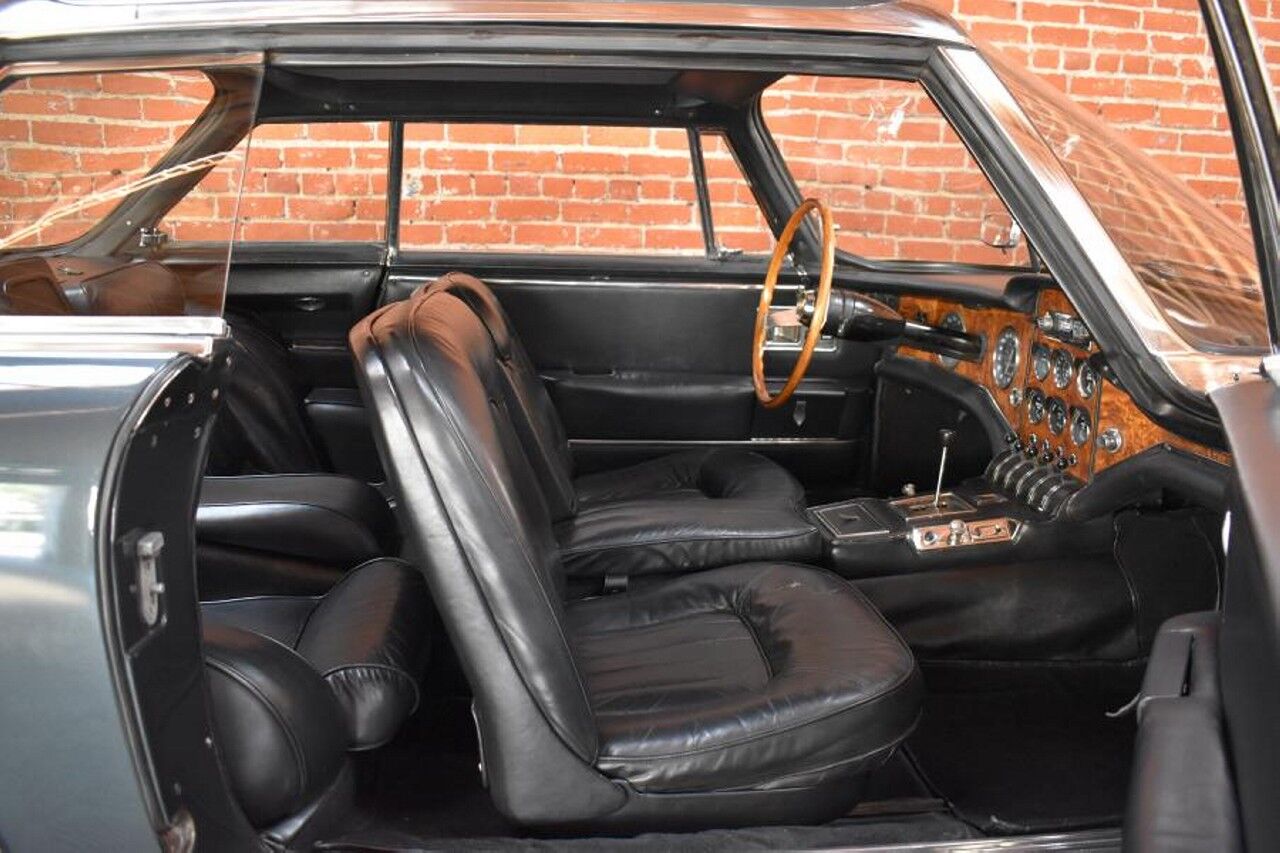 El exterior en gris metálico de este Facel II parece estar en una condición casi de museo, y el gran bloque de origen Chrysler de ocho cilindros y 6.276 cc se ve lo suficientemente limpio como para comer encima de él pero, por favor, no hace falta probarlo tampoco. En el interior, encontrarás cuatro lujosos asientos de cuero negro y un salpicadero con inserciones de metal y madera de primera calidad.