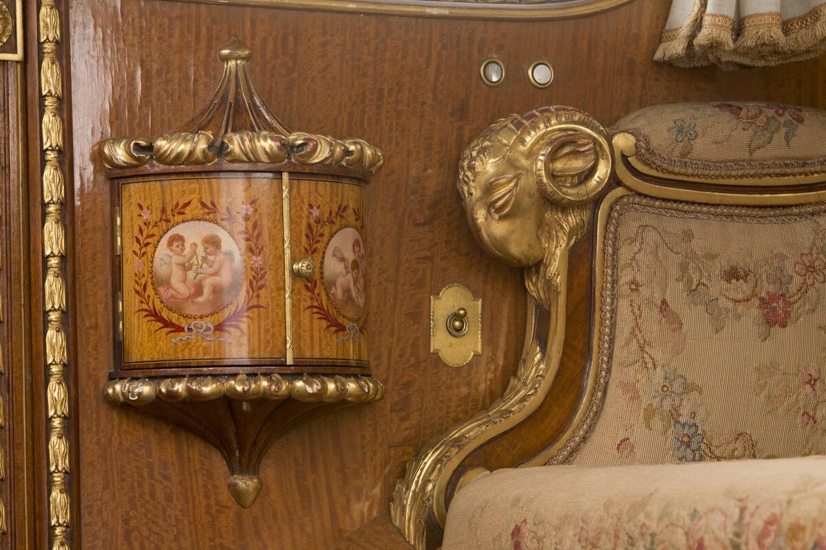 Quiso hacerle un regalo muy especial a su mujer Maude, enamorada de la historia francesa del siglo XVIII. Así que recurrió a los mejores tapiceros, fabricantes de muebles y artesanos para convertir el interior del Phantom en un salón al más puro estilo Versalles. La idea surgió después de que John Barnett, encargado de la restauración y diseño del vehículo, descubriera una silla de la desafortunada monarca Maria Antonieta en el Museo Victoria y Albert de Londres. Y vaya si lo consiguió. Los artesanos de las famosas alfombras francesas Aubusson pasaron nueve meses trabajando sólo en la tapicería de los asientos traseros.