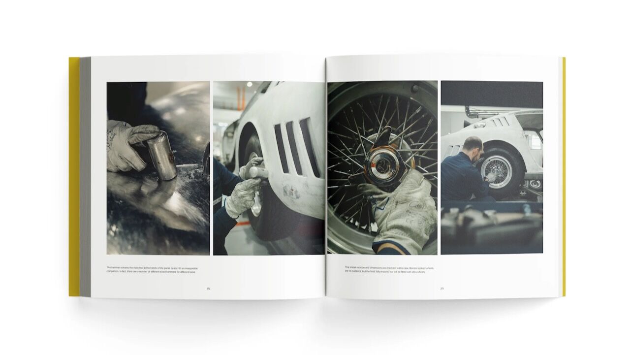 Los artífices de este proyecto editorial son los especialistas de Bacchelli & Villa, uno de los talleres de restauración más prestigiosos del mundo, fundado en 1972. Bajo la dirección de Enzo Mattioli Ferrari, bisnieto de Enzo Ferrari, y en estrecha colaboración con la editorial modenesa Artioli Editore, han dado forma a un volumen que destila devoción por los clásicos. La elección de estos autores no es una mera coincidencia, ya que por las manos de sus artesanos han pasado más de noventa unidades del Ferrari 275 para ser devueltas a la vida.