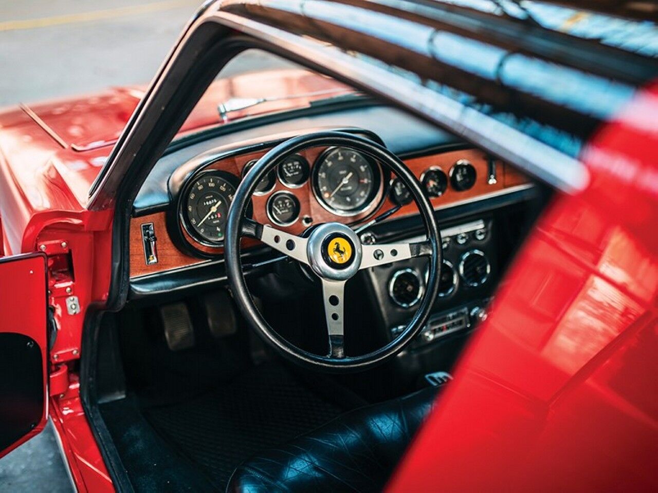En 1967, el importador de Ferrari, Luigi Chinetti, vendió este 330 GTC chasis #10659 a Gerald L. Buhrman de Ann Arbor, Michigan. Chinetti no pudo prever cómo el coche pronto terminaría chocando en Massachusetts por su segundo propietario, Robert V. Kennedy (no, no ese Kennedy). Cuando Chinetti vio el daño, decidió enviar el deportivo italiano a Milán para crear coche de techo, un modelo único.